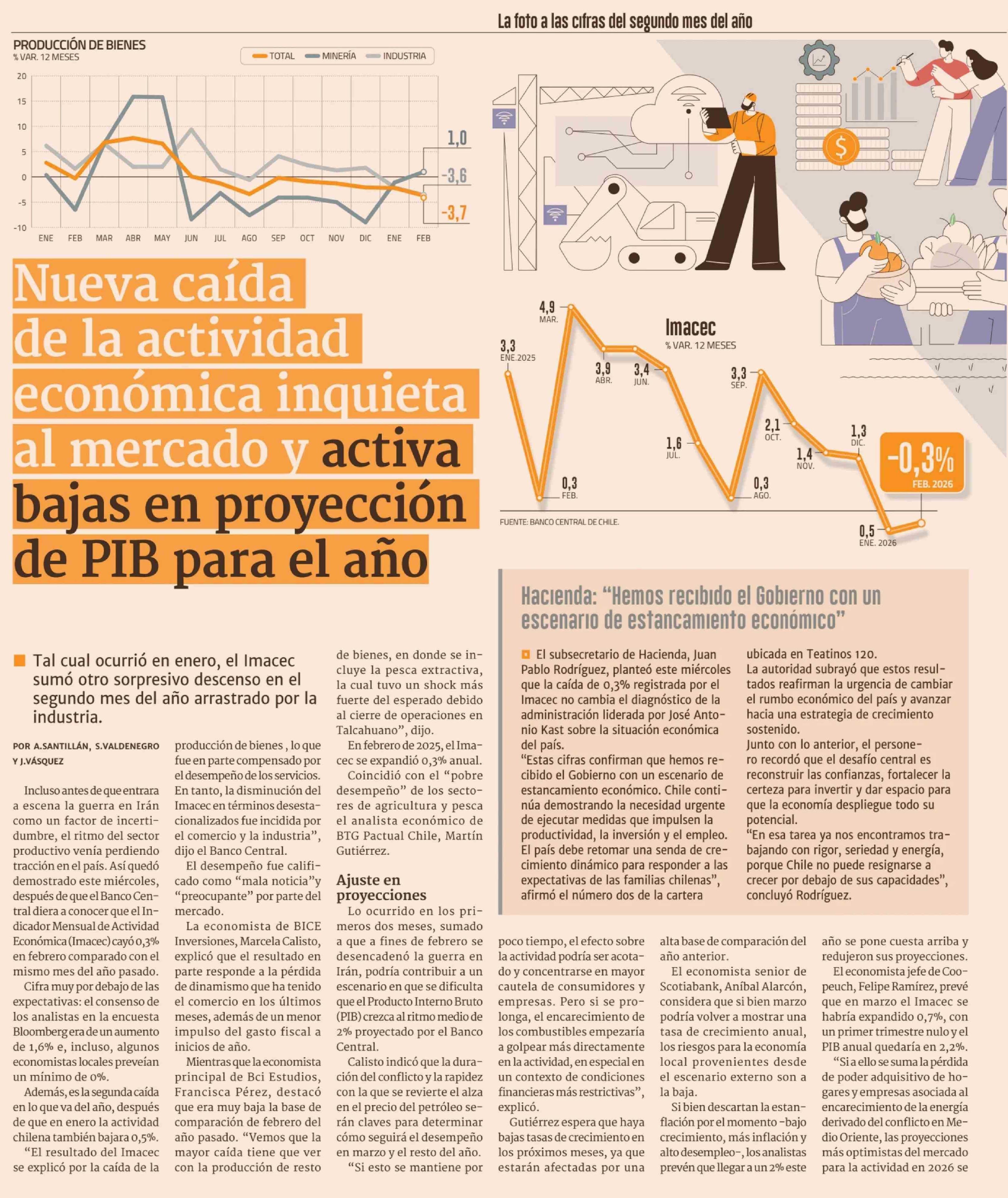 Nueva caída de la actividad económica inquieta al mercado y activa bajas en proyección de PIB para el año