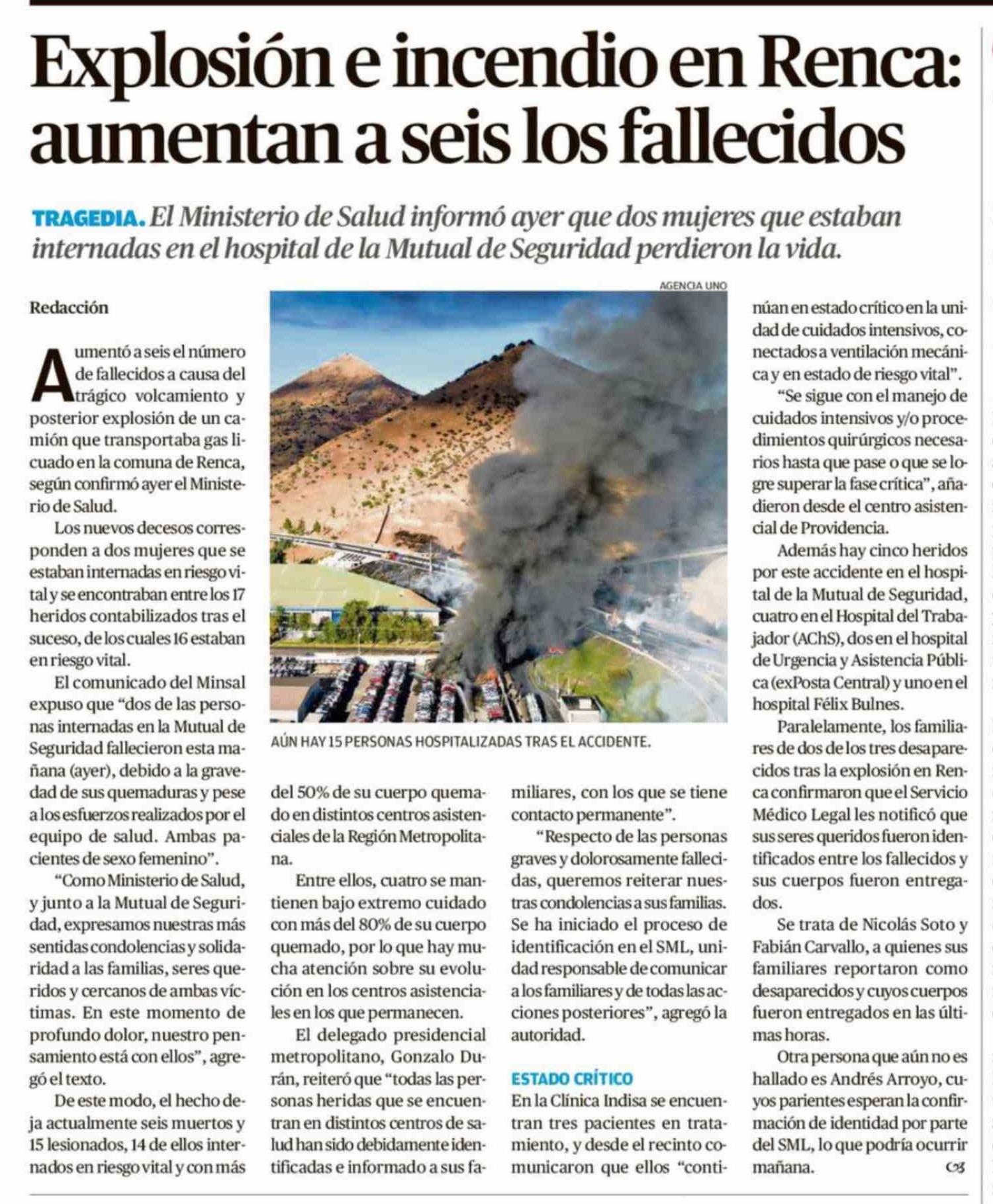 Explosión e incendio en Renca: aumentan a seis los fallecidos
