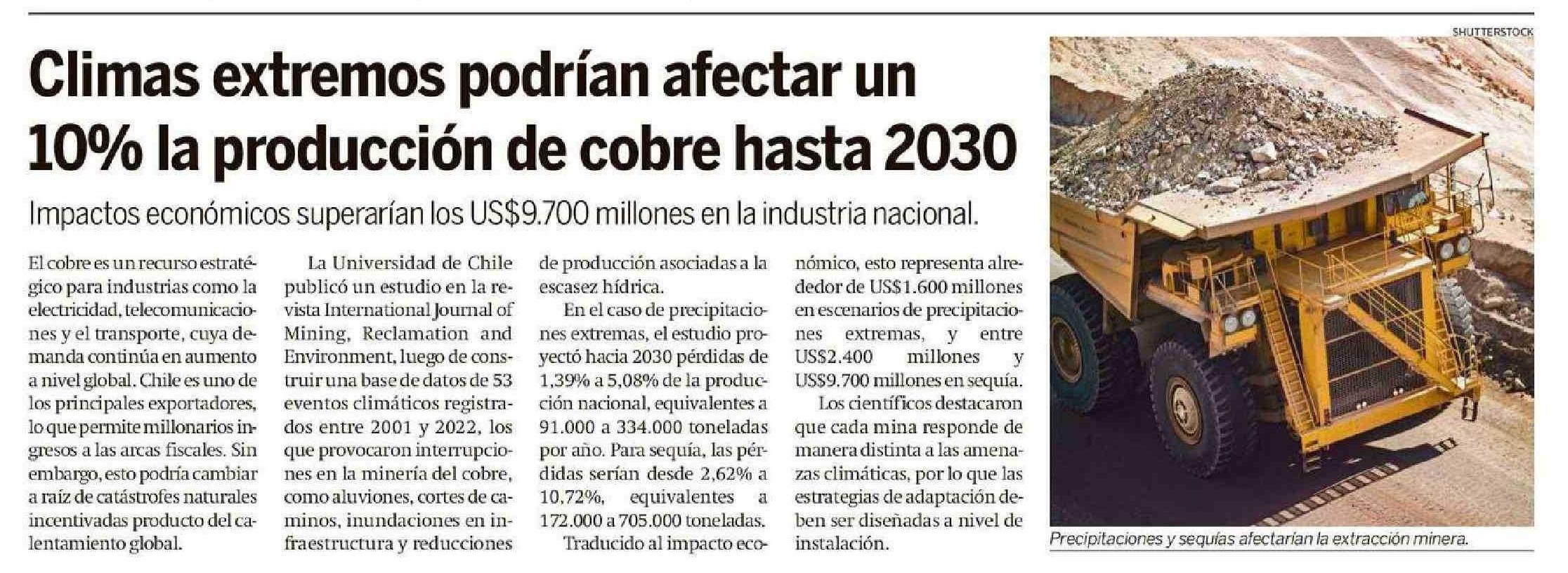 Climas extremos podrían afectar un 10% la producción de cobre hasta 2030