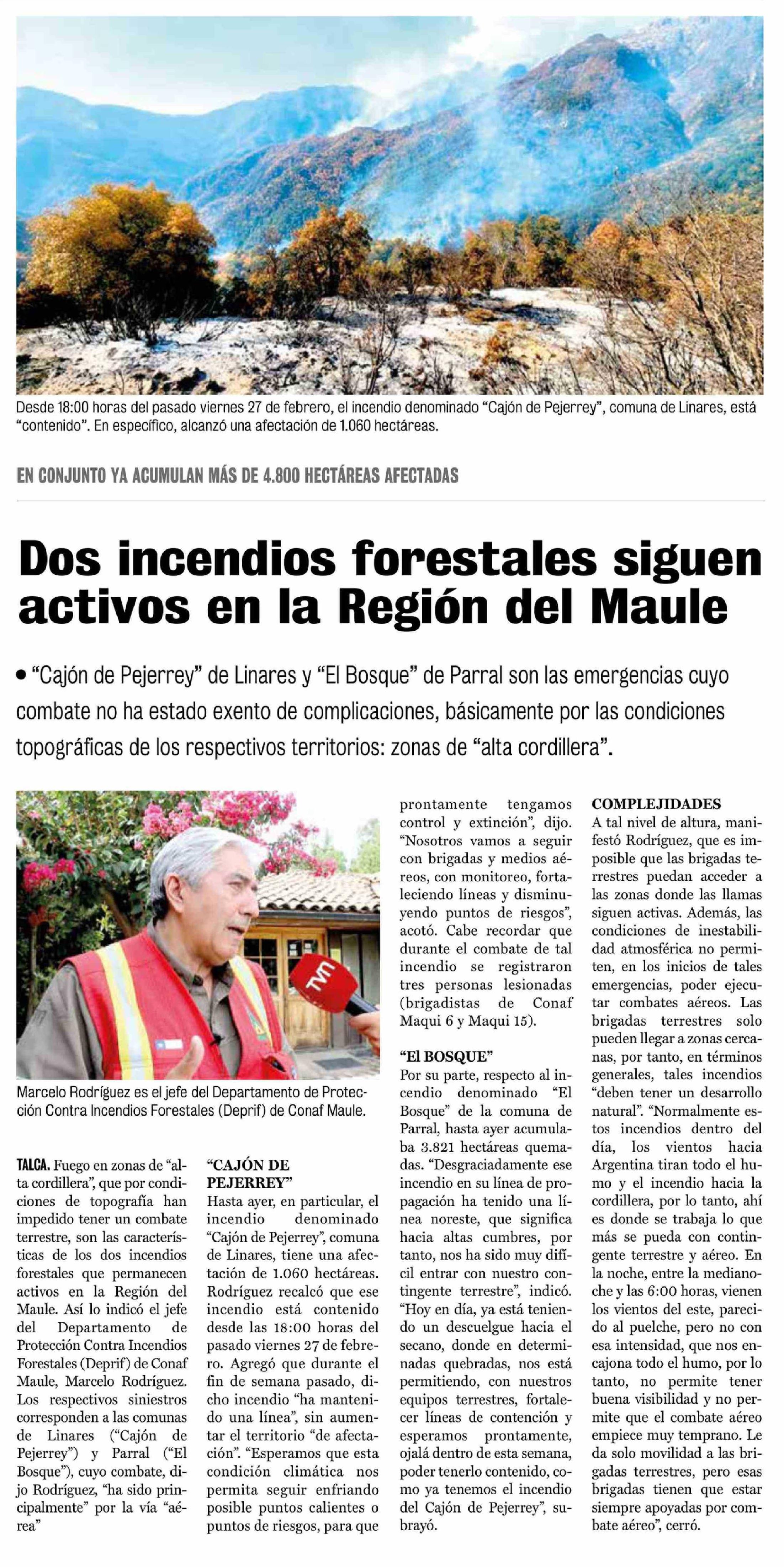 Dos incendios forestales siguen activos en la Región del Maule