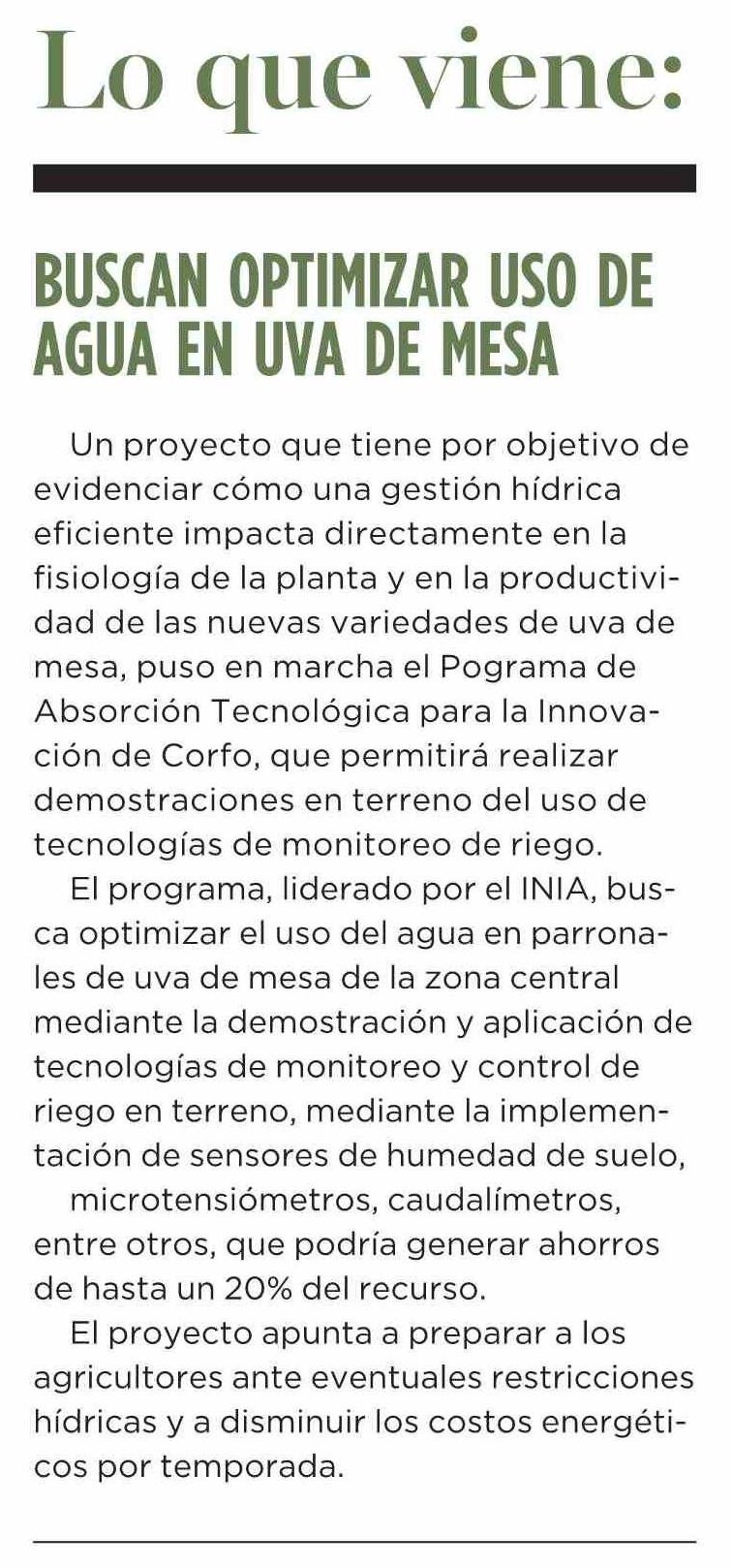 BUSCAN OPTIMIZAR USO DE AGUA EN UVA DE MESA