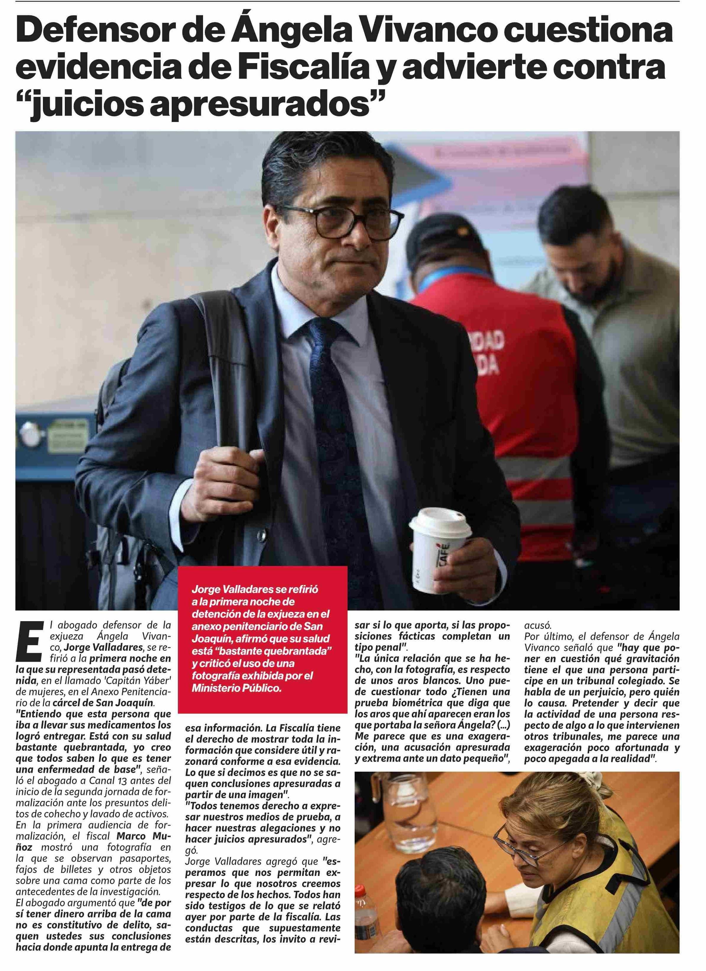 Defensor de Angela Vivanco cuestiona evidencia de Fiscalía y advierte contra “juicios apresurados”
