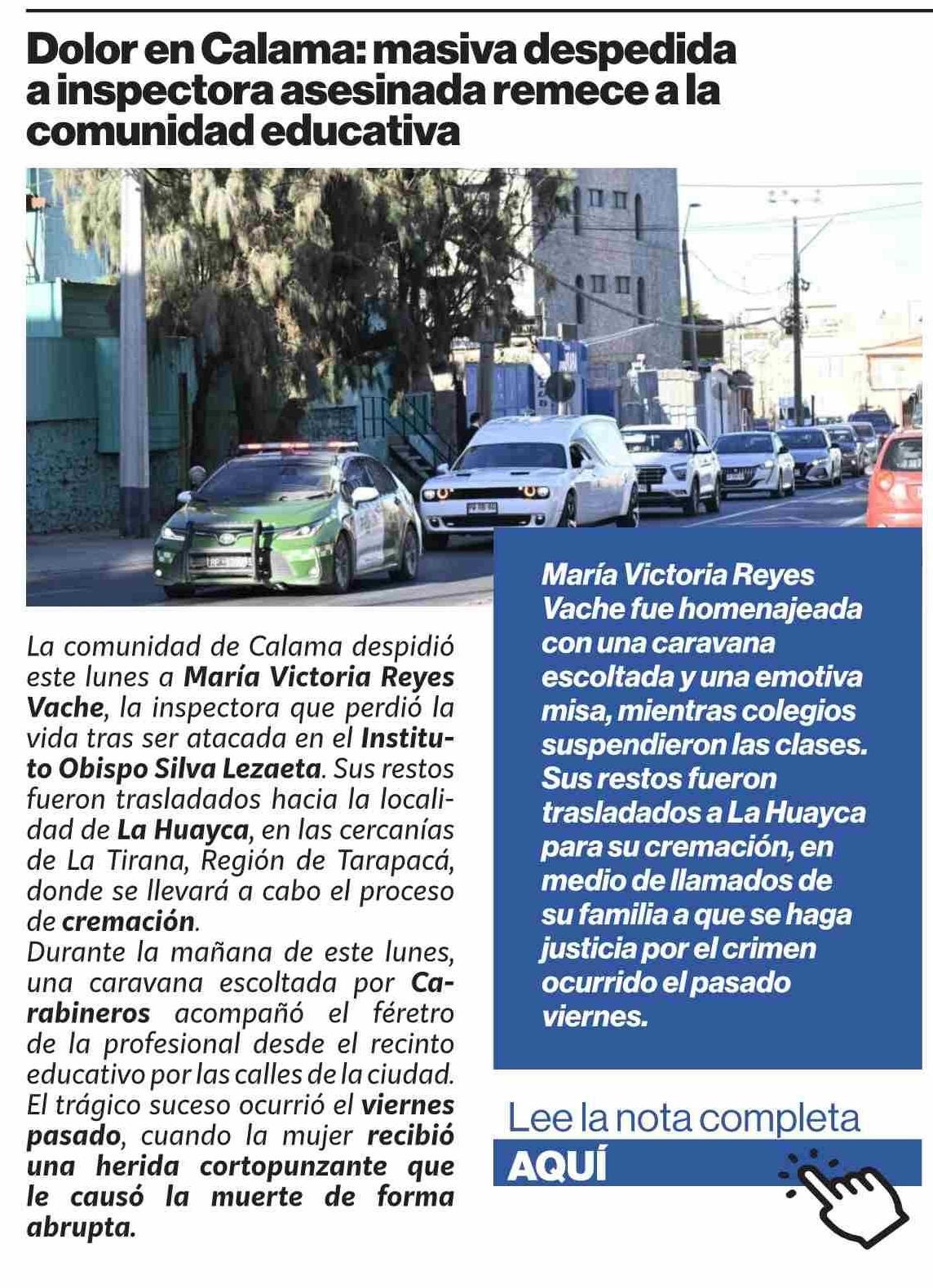 Dolor en Calama: masiva ainspectora asesinada remecea la comunidad educativa