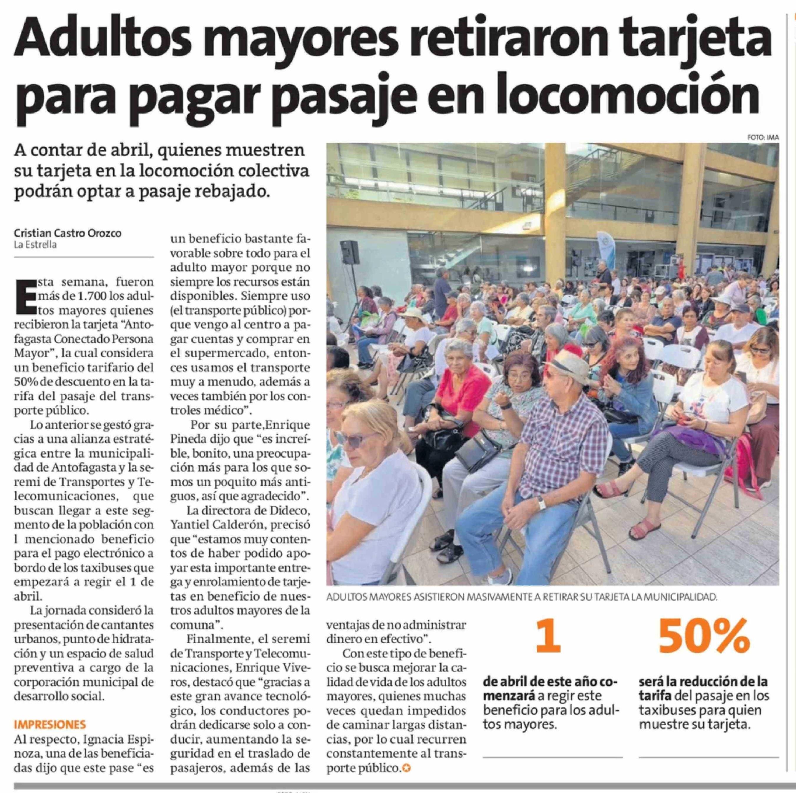 Adultos mayores retiraron tarjeta para pagar pasaje en locomoción