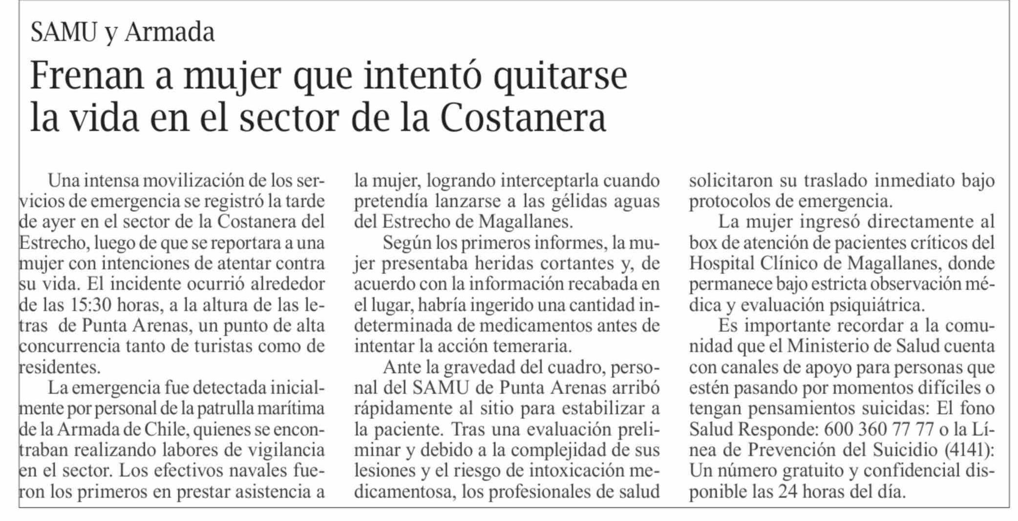Frenan a mujer que intentó quitarse la vida en el sector de la Costanera