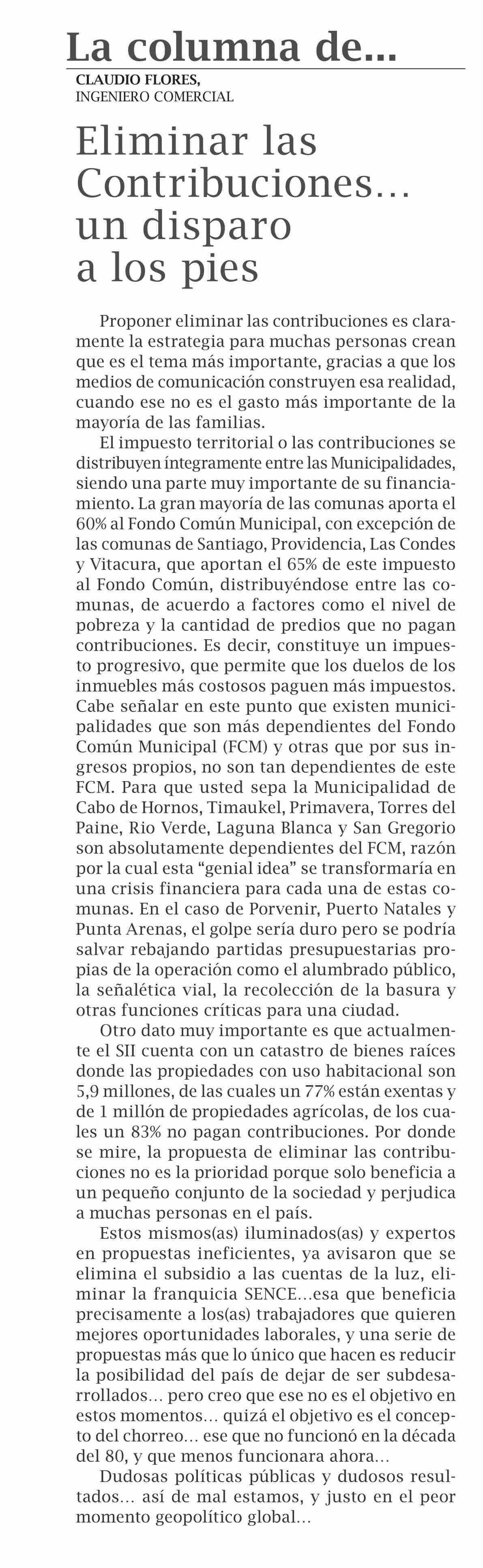 COLUMNAS DE OPINIÓN: Eliminar las Contribuciones... un disparo a los pies
