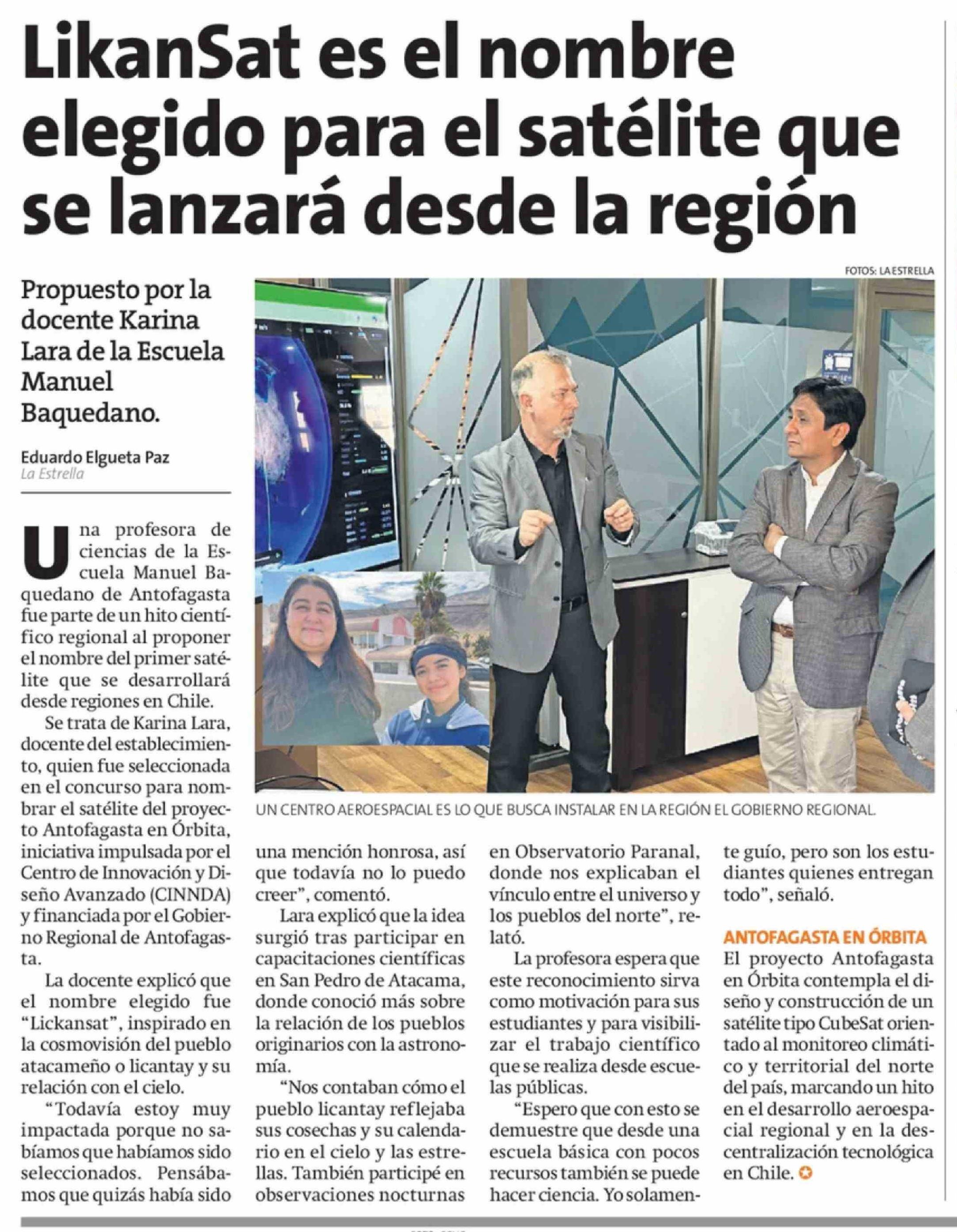 LikanSat es el nombre elegido para el satélite que se lanzará desde la región
