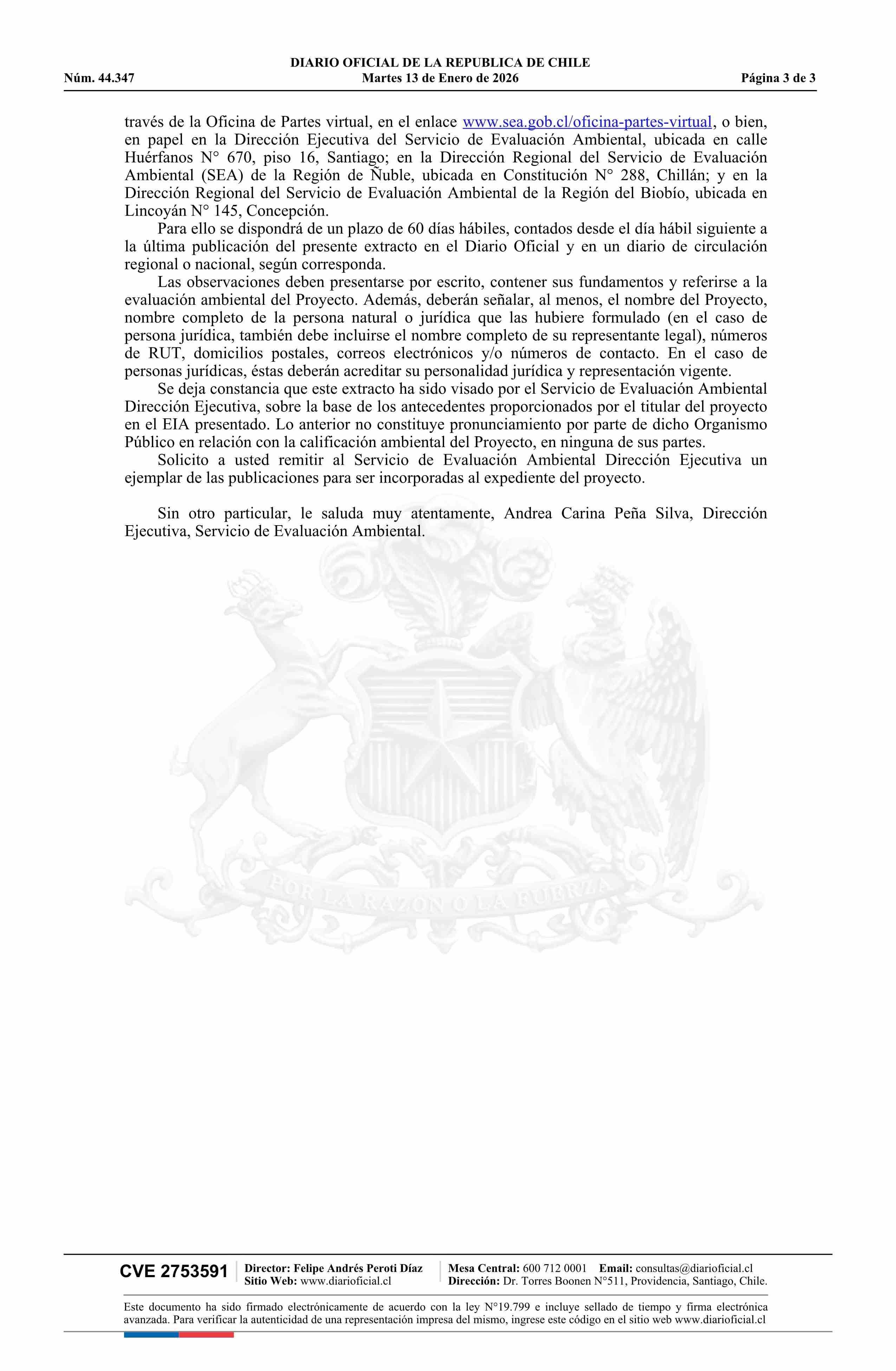 | Fuente: | DIARIO OFICIAL CHILE - BOLETÍN OFICIAL DE MINERÍA (DIARIO OFICIAL CHILE – BOM – CITACIONES A JUNTA) | Página(s): | 20-22 |