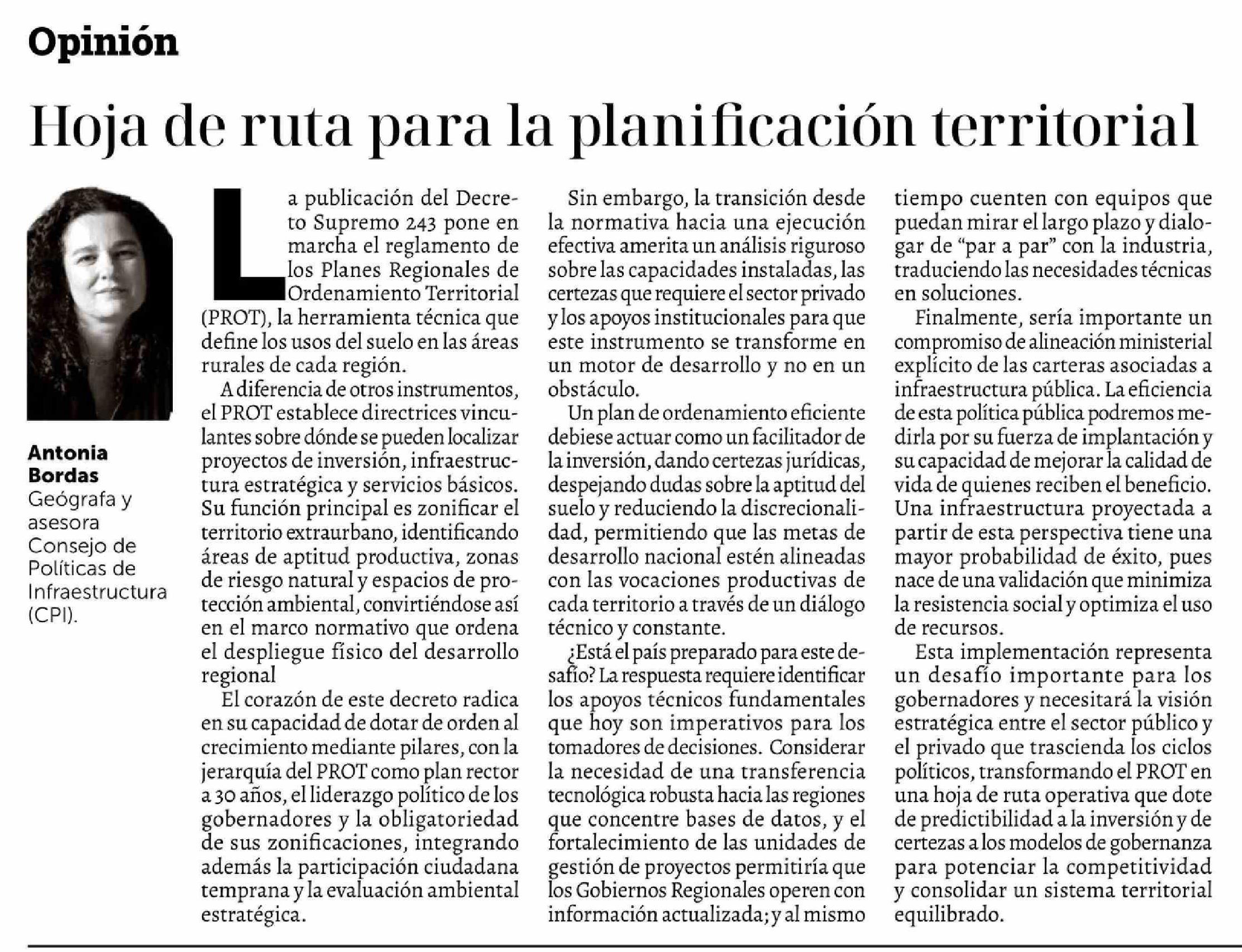 Columnas de Opinión: Hoja de ruta para la planificación territorial