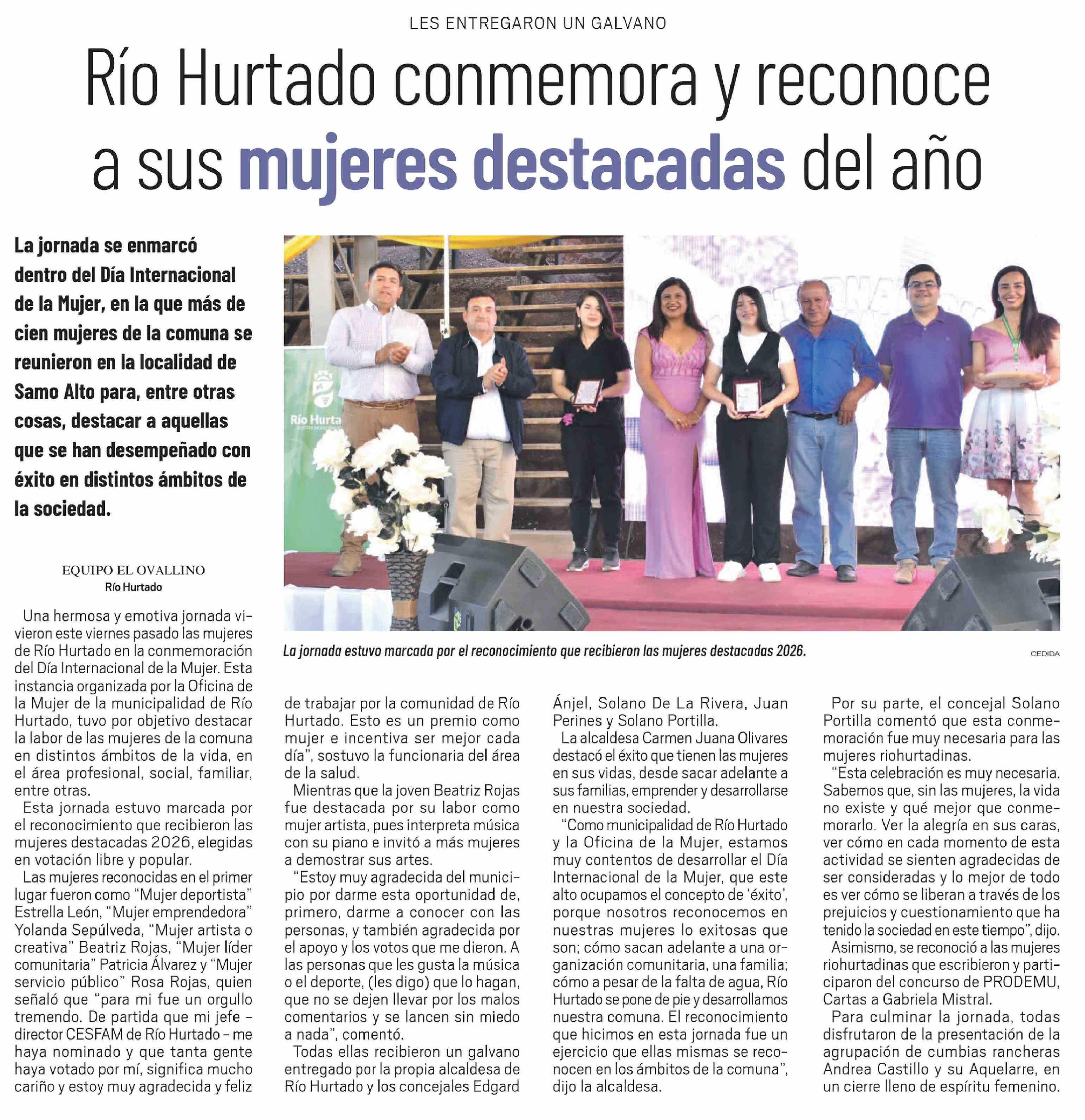 Río Hurtado conmemora y reconoce a sus mujeres destacadas del año