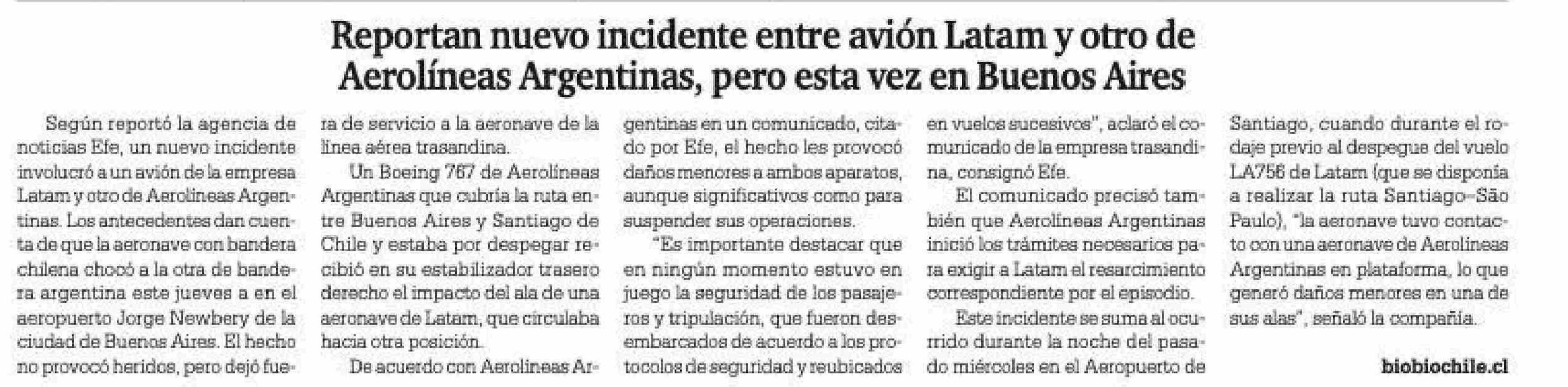Reportan nuevo incidente entre avión Latam y otro de Aerolíneas Argentinas, pero esta vez en Buenos Aires