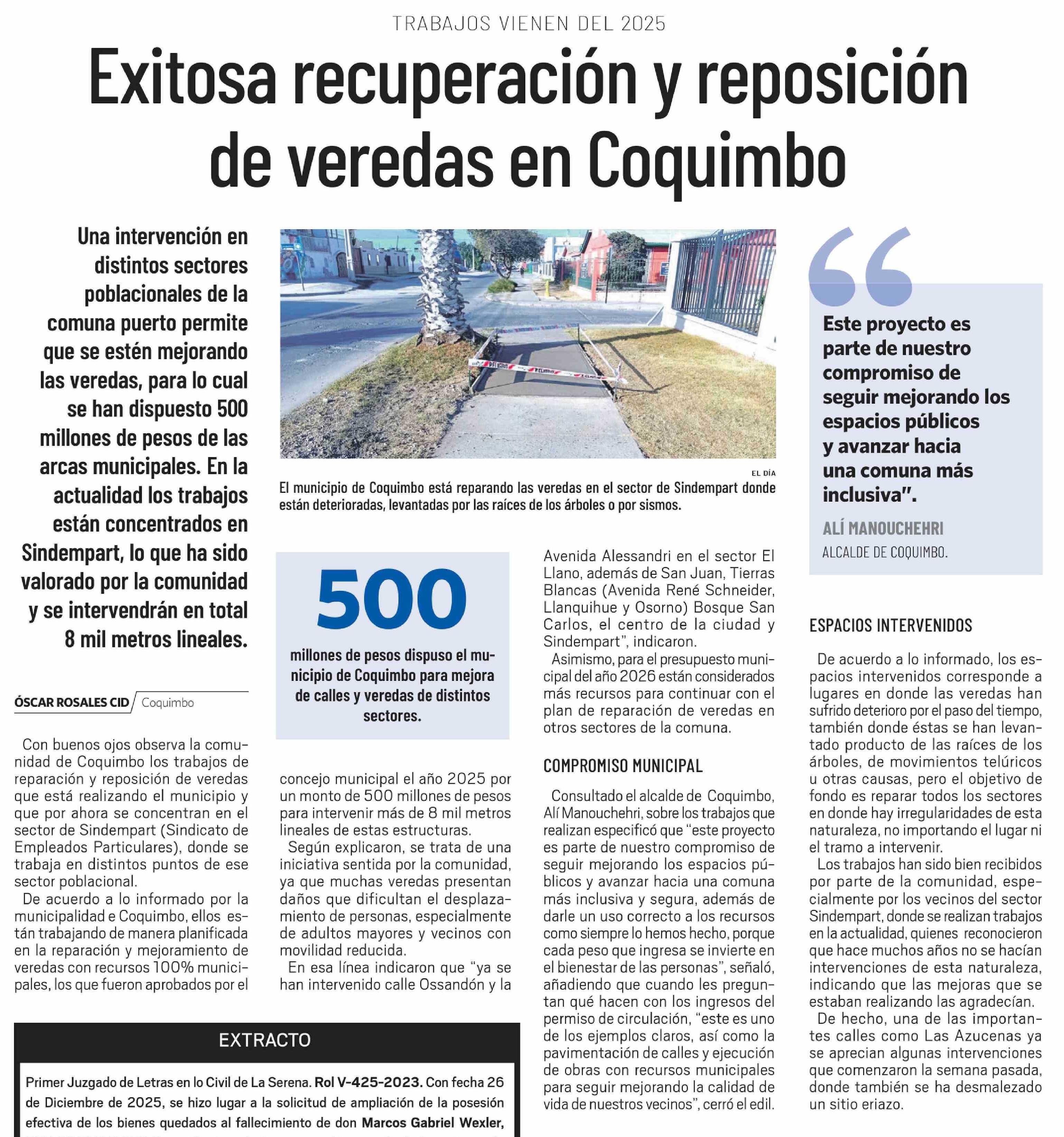 Exitosa recuperación y reposición de veredas en Coquimbo