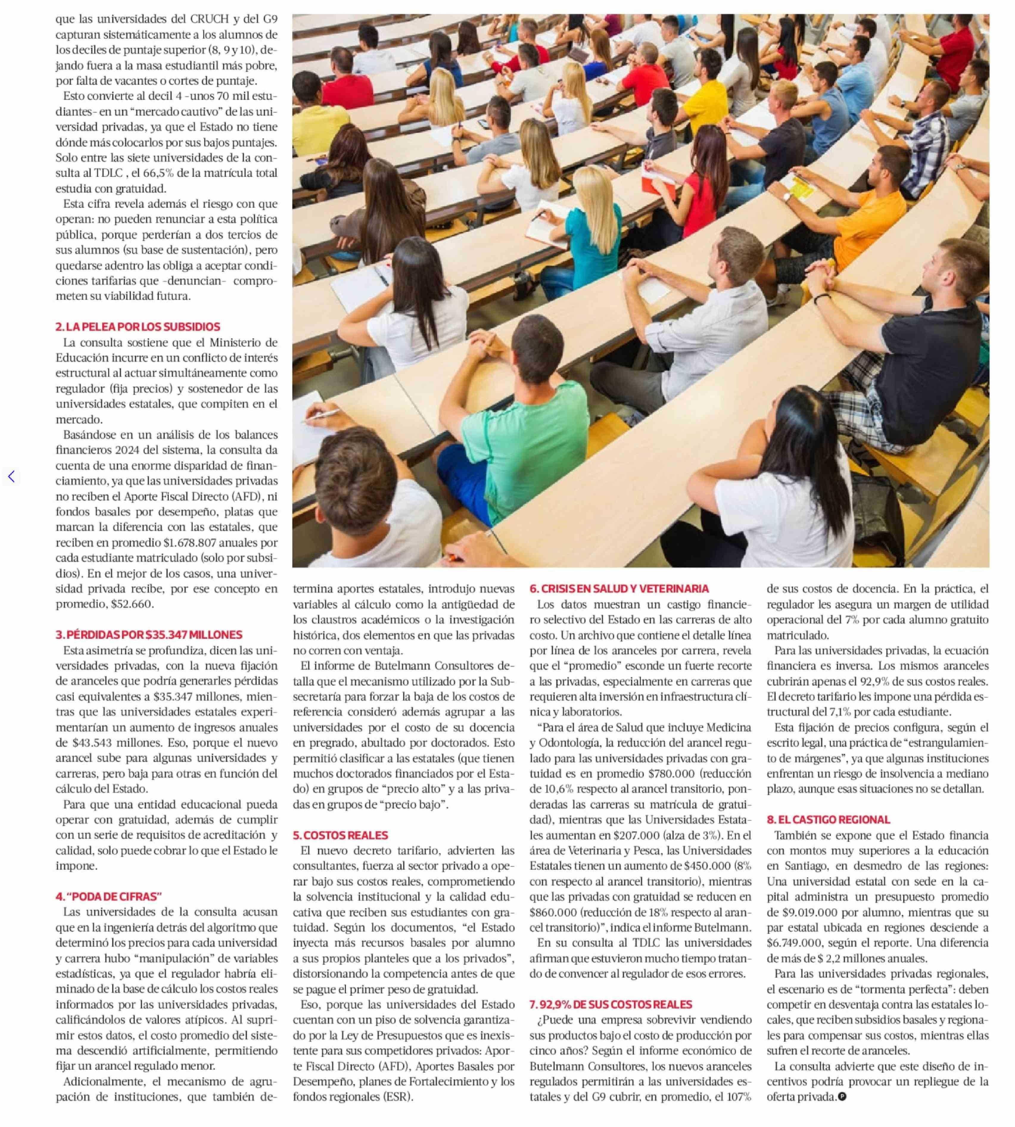 | Título: | Los desconocidos números -y peleaspor los US$ 2.715 millones de la gratuidad que destapó una consulta al TDLC de siete universidades privadas |