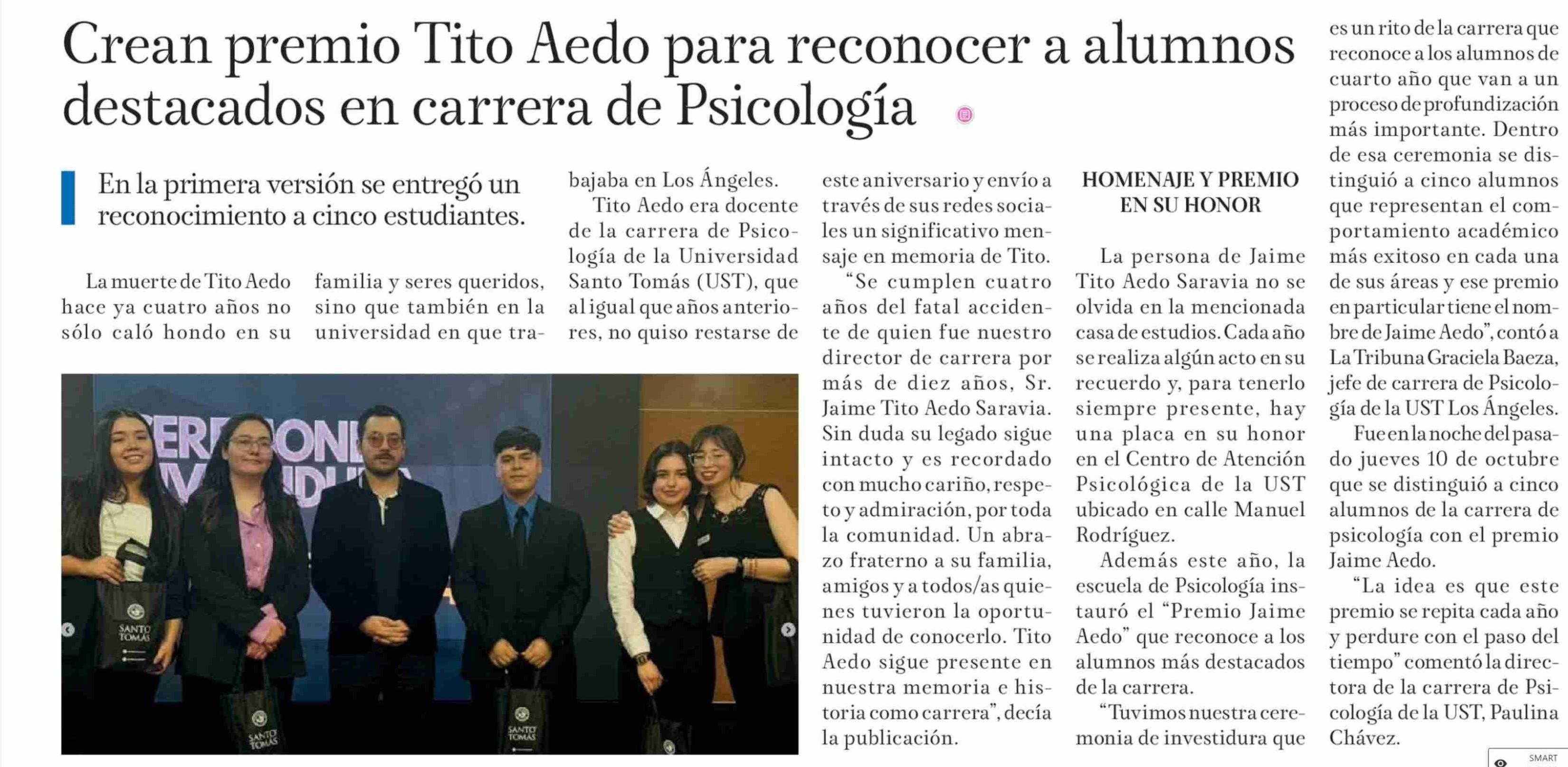 Crean premio Tito Aedo para reconocer a alumnos destacados en carrera de Psicología
