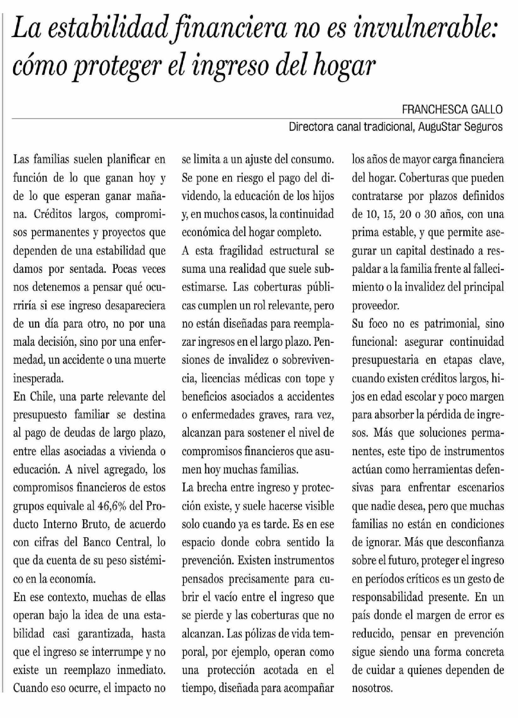 Columnas de Opinión: La estabilidad financiera no es invulnerable: cómo proteger el ingreso del hogar