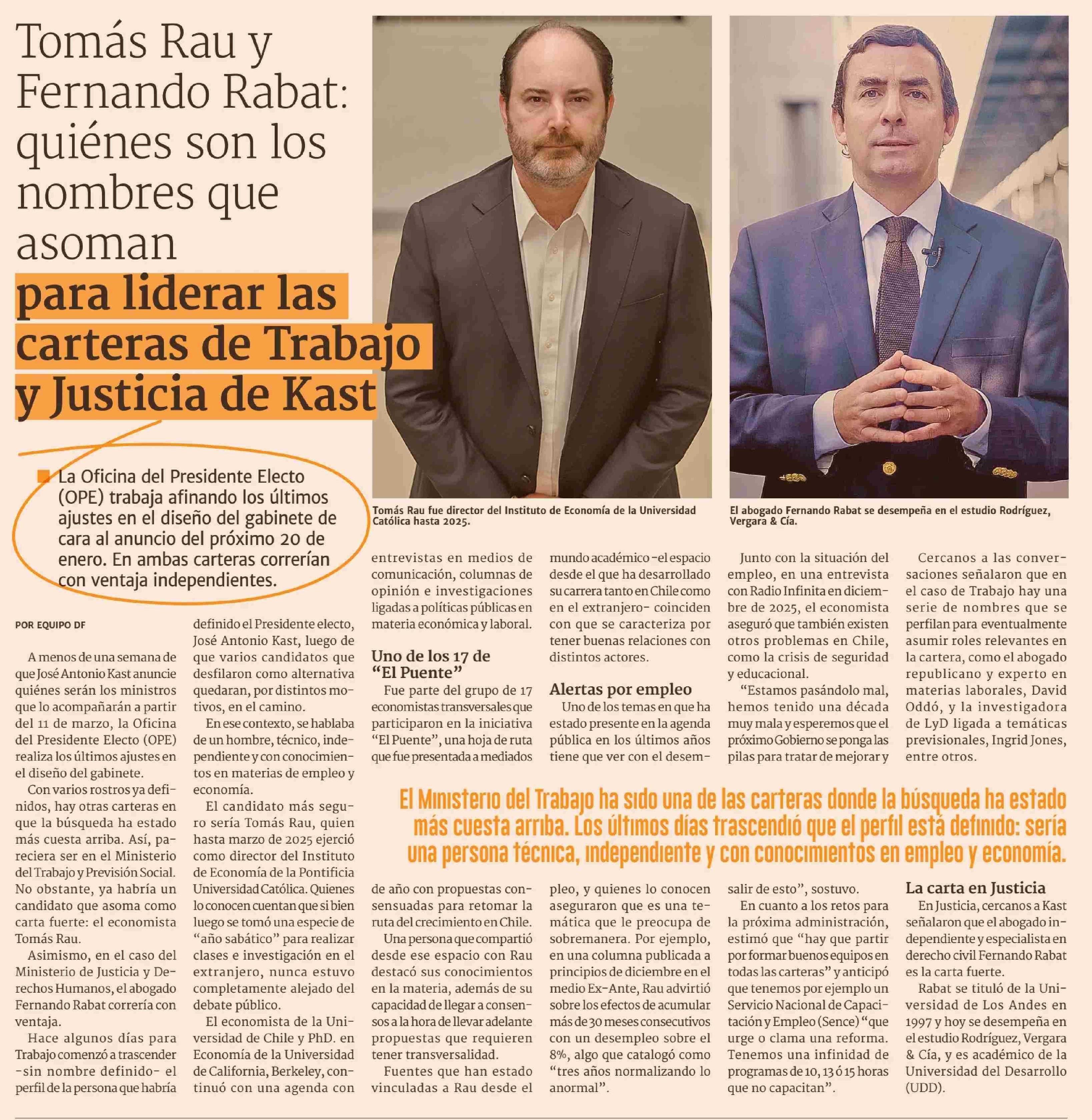 Tomás Rau y Fernando Rabat: quiénes son los nombres que para liderar las carteras de Trabajo y Justicia de Kast