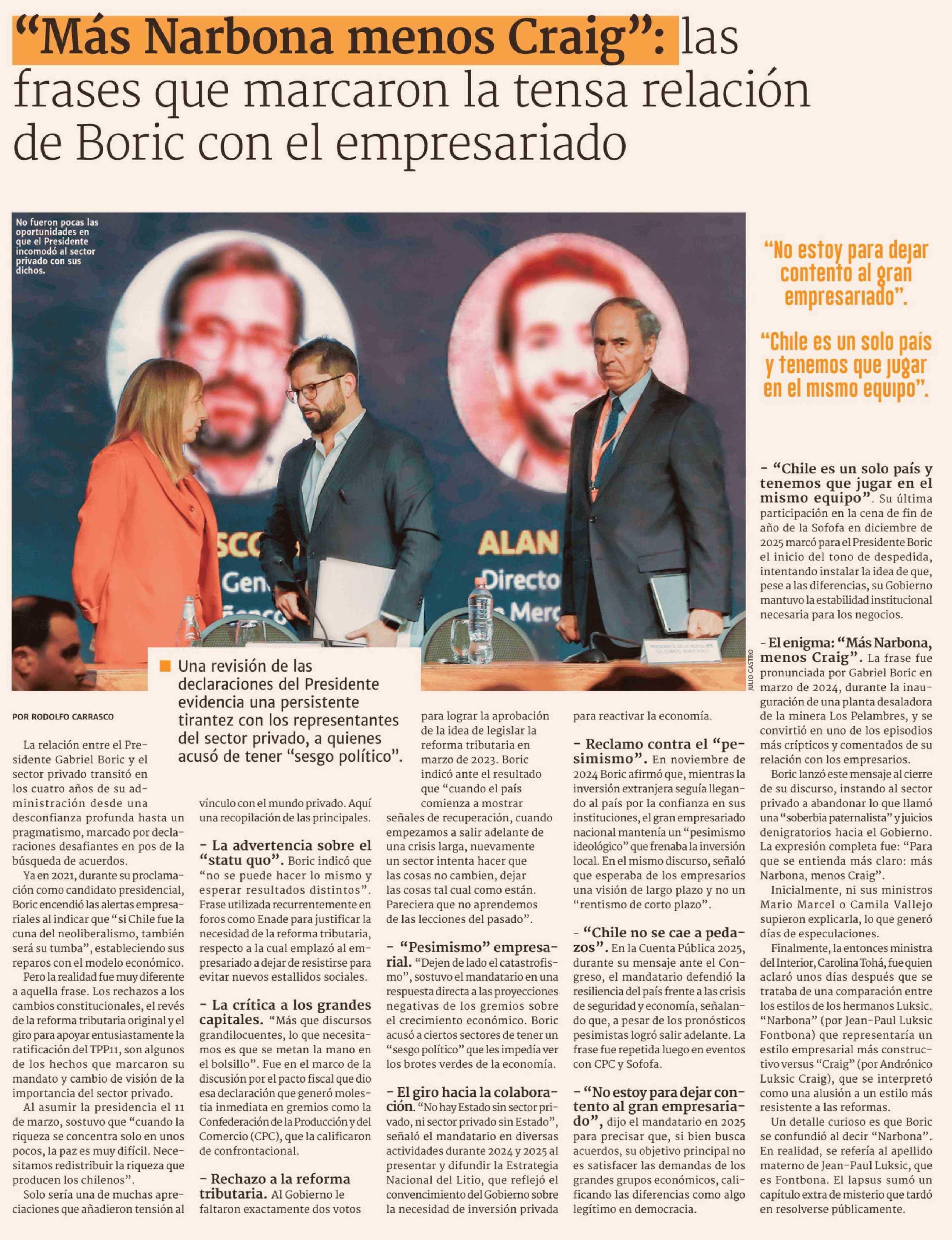 "Más Narbona menos Craig": las frases que marcaron la tensa relación de Boric con el empresariado