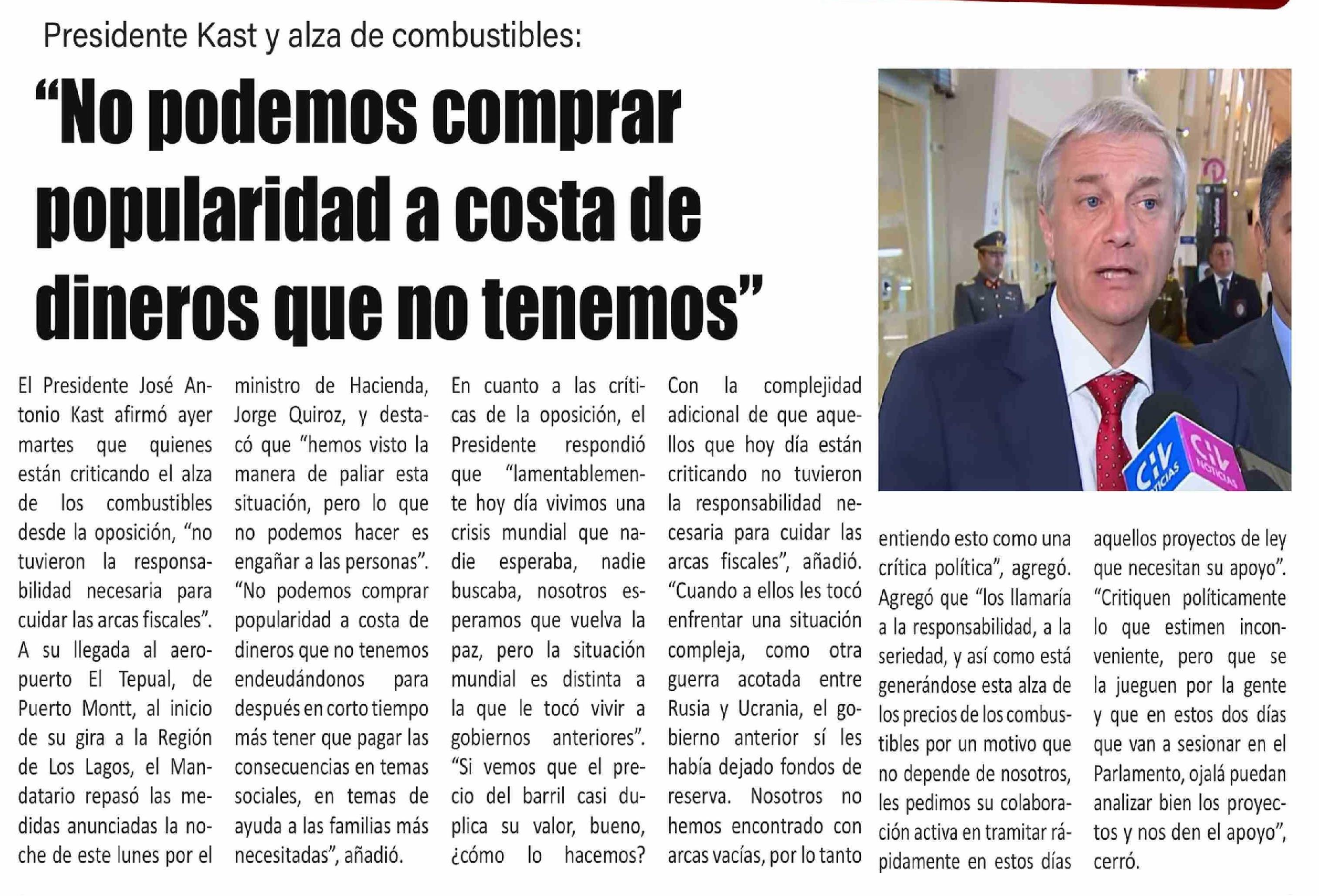 "No podemos comprar popularidad a costa de dineros que no tenemos"