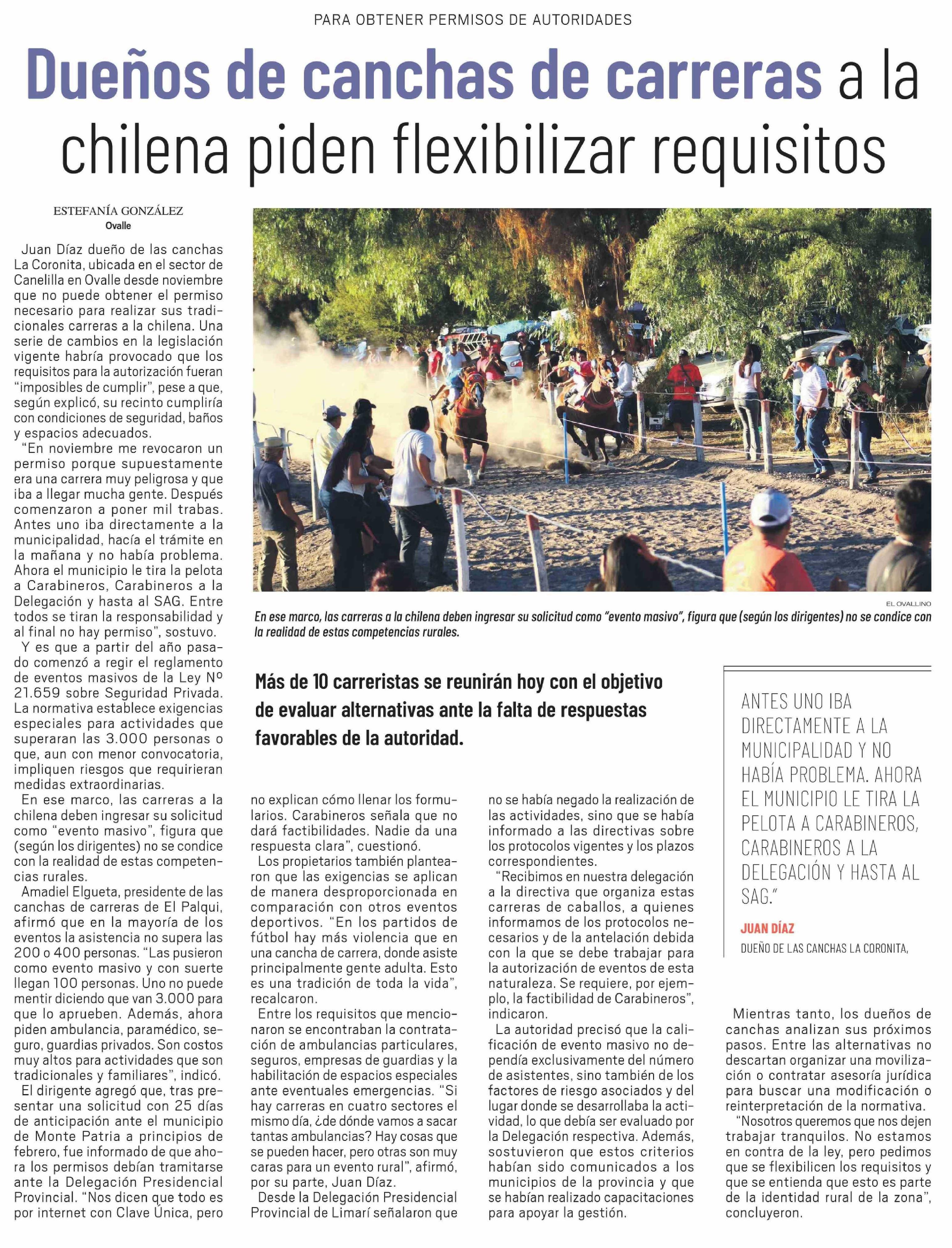 Dueños de canchas de carreras a la chilena piden flexibilizar requisitos