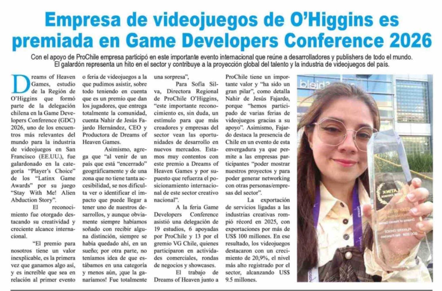 Empresa de videojuegos de O'Higgins es premiada en Game Developers Conference 2026