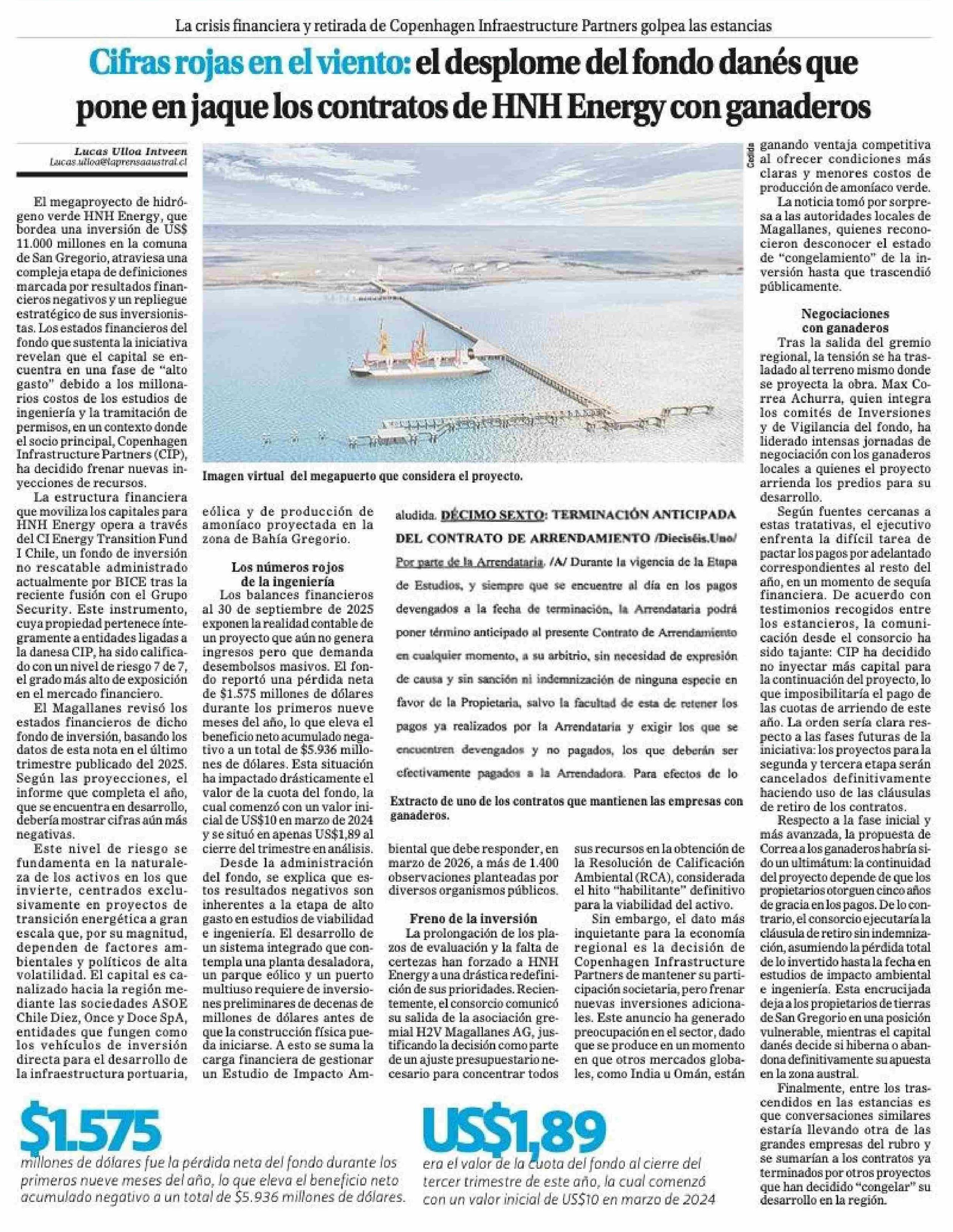 Cifras rojas en el viento: el desplome del fondo danés que pone en jaque los contratos de HNH Energy con ganaderos