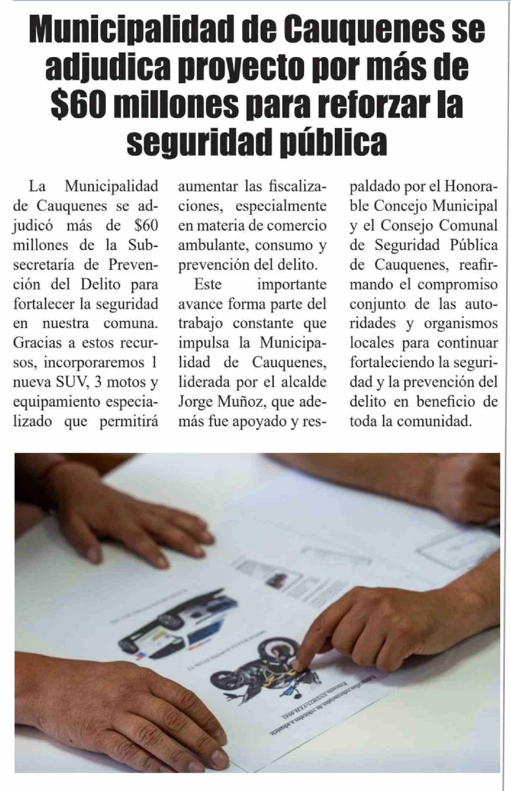 Municipalidad de Cauquenes se adjudica proyecto por más de $60 millones para reforzar la seguridad pública