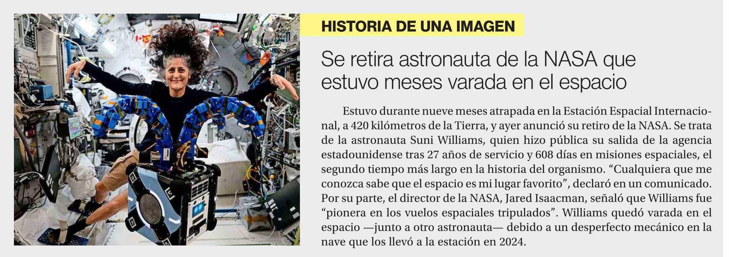 Se retira astronauta de la NASA que estuvo meses varada en el espacio