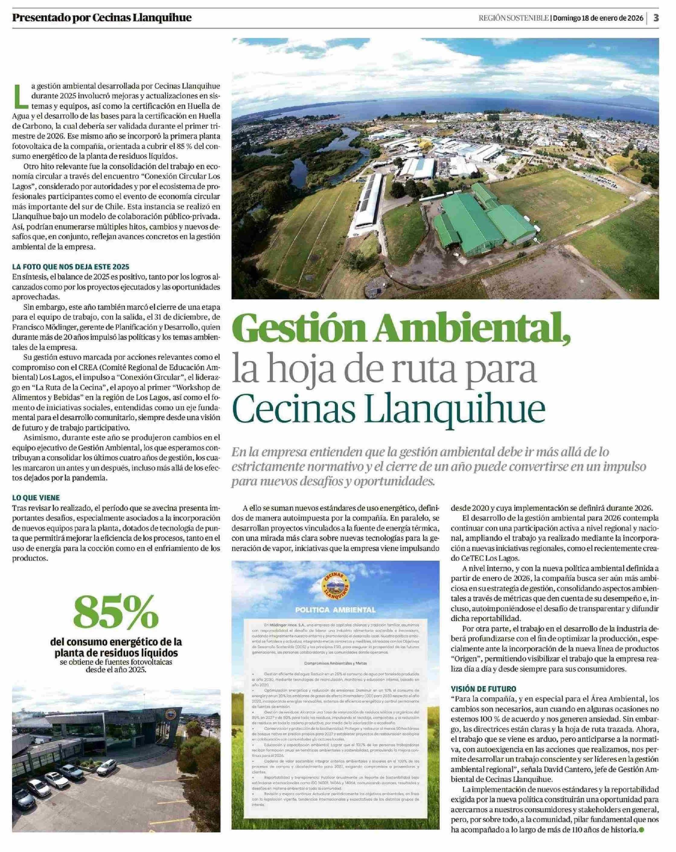 Gestión Ambiental, la hoja de ruta para Cecinas Llanquihue
