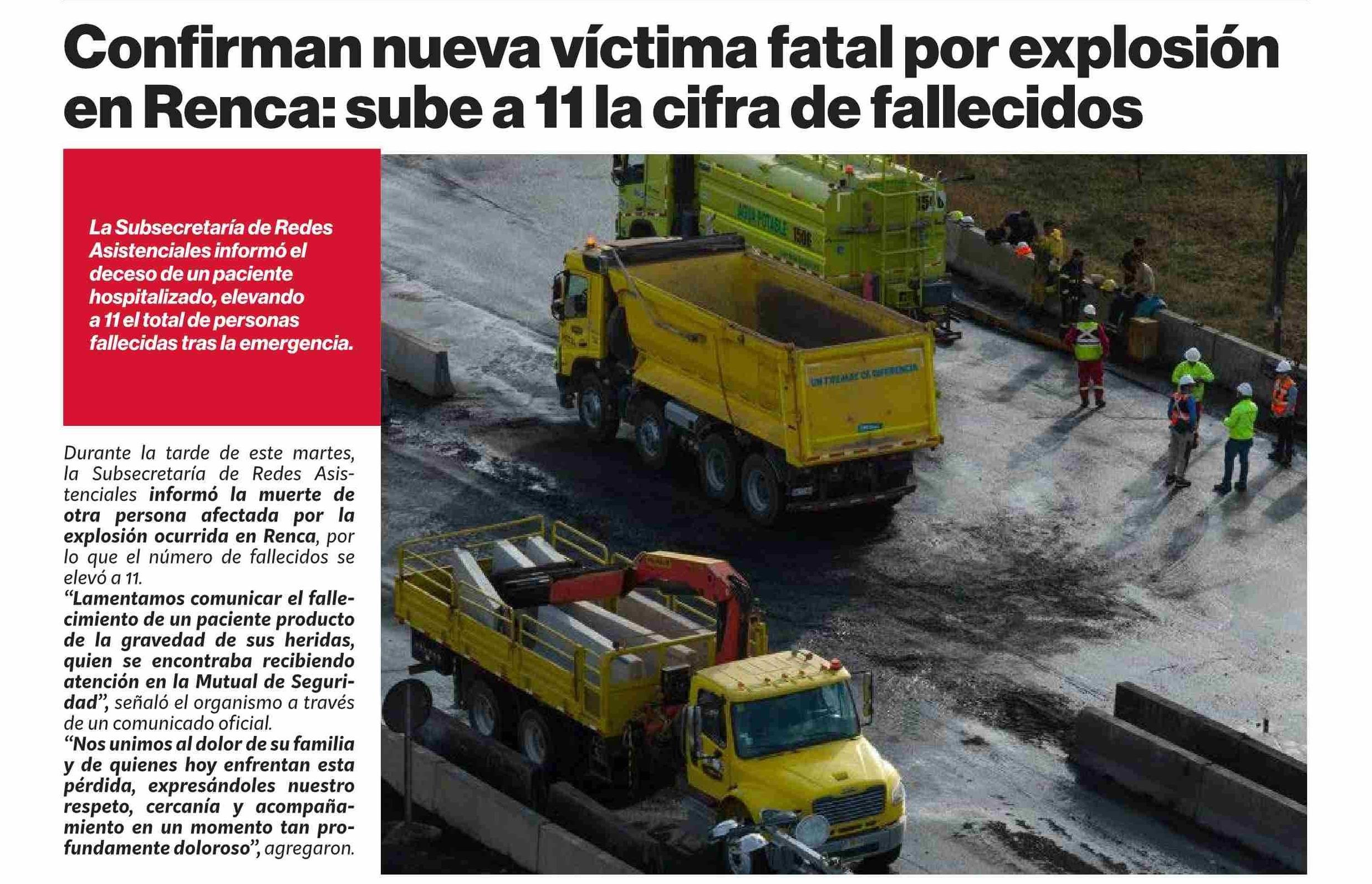 Confirman nueva víctima fatal por explosión en Renca: sube a lila cifra de fallecidos
