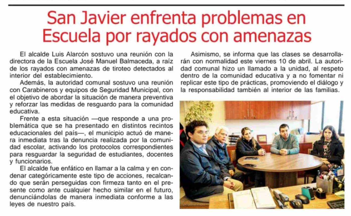 San Javier enfrenta problemas en Escuela por rayados con amenazas