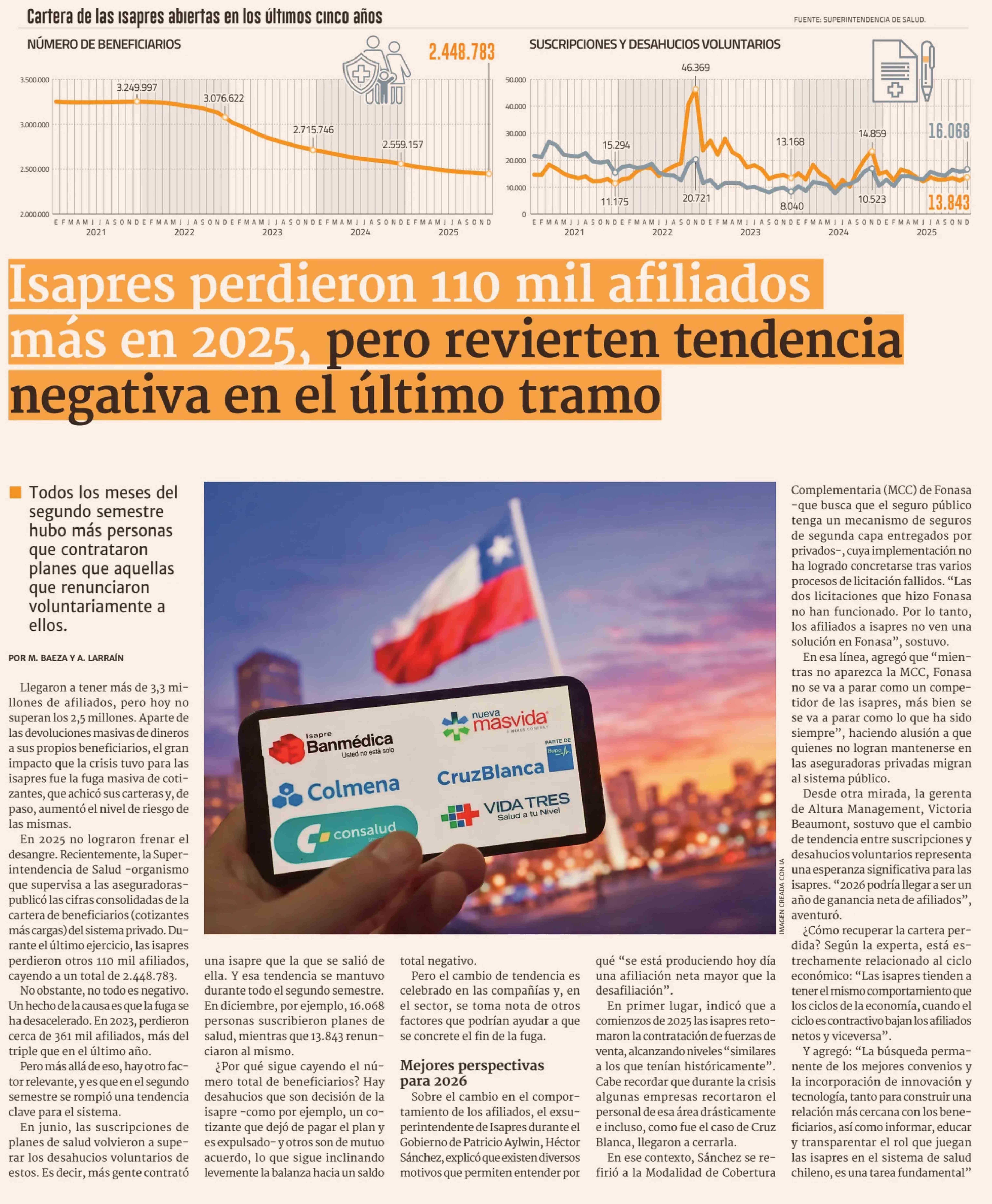 Isapres perdieron 110 mil afiliados más en 2025, pero revierten tendencia negativa en el último tramo