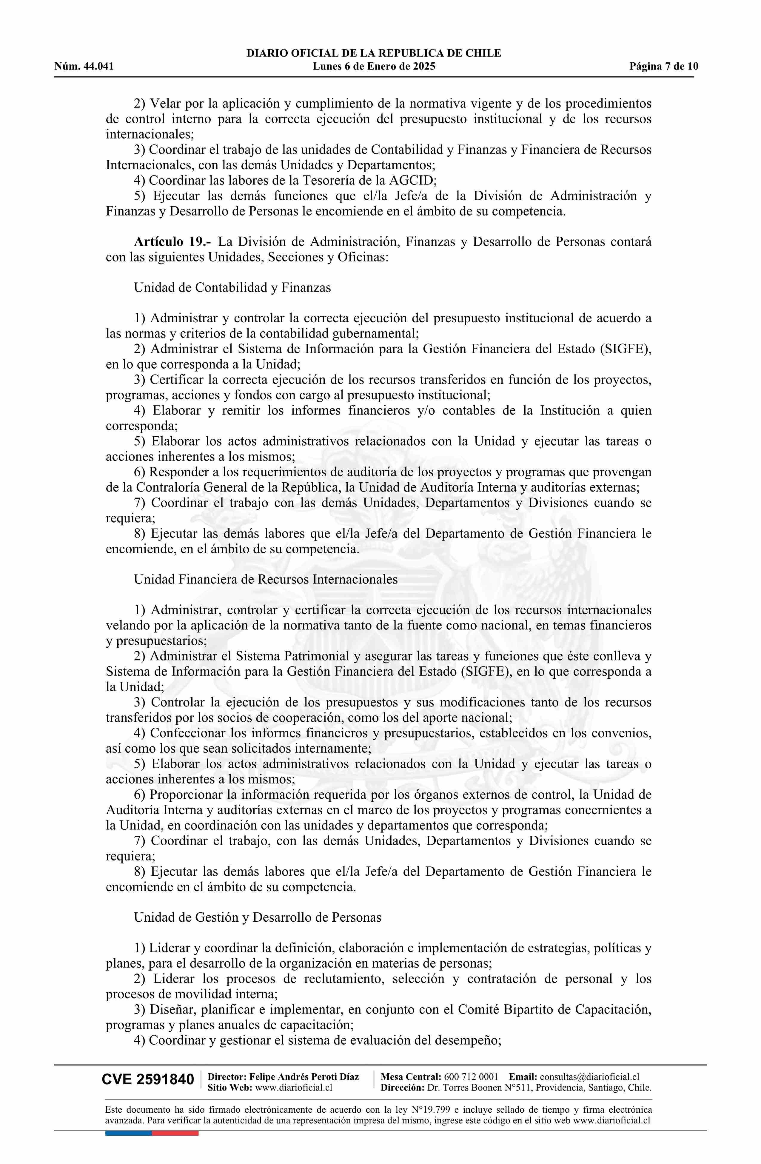 | Título: | Resolución número 1, de 2024.- Deja sin efecto resolución N° 3, de 2020, y aprueba nueva organización interna de la Agencia Chilena de Cooperación Internacional para el Desarrollo |
