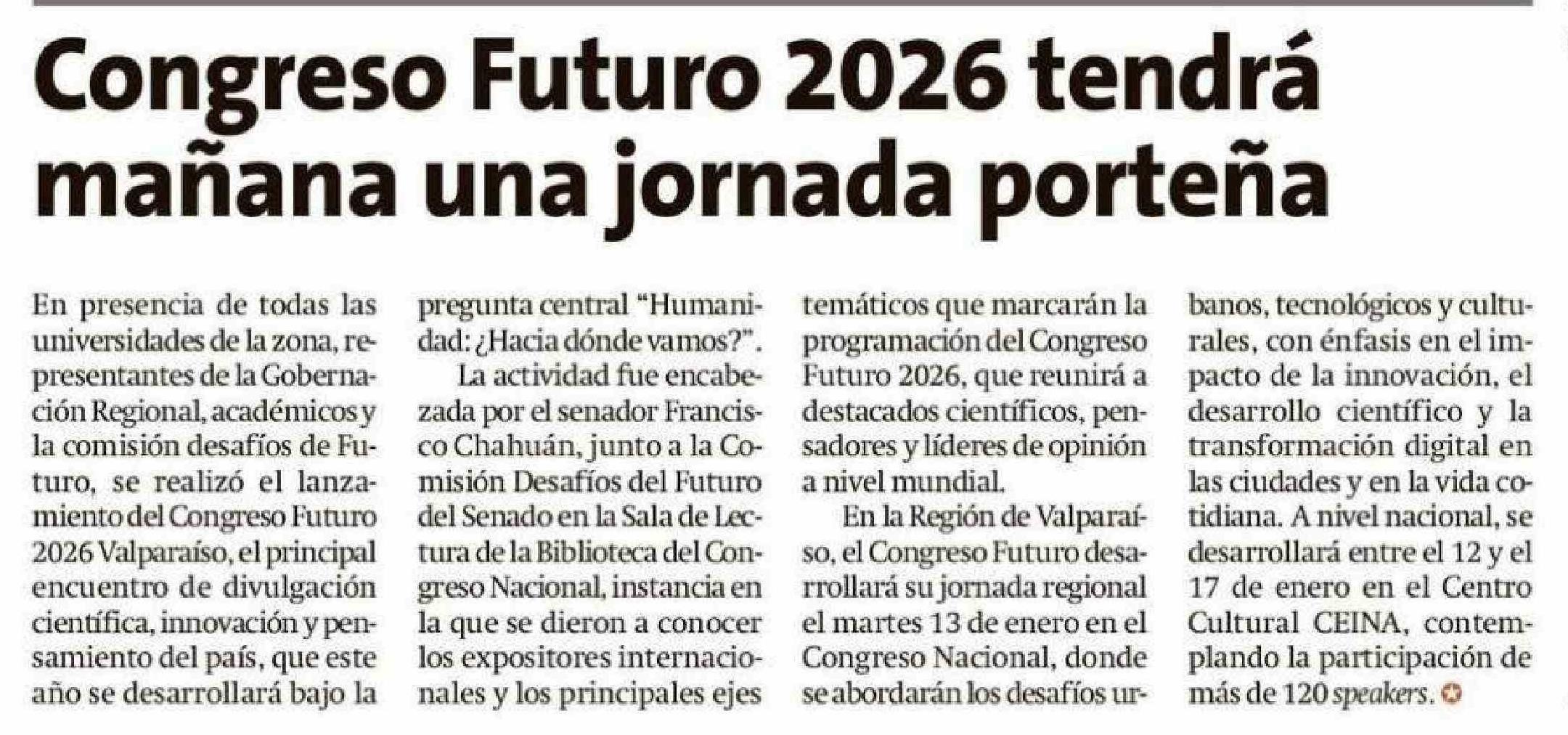 Título: Congreso Futuro 2026 tendrá mañana una jornada porteña
