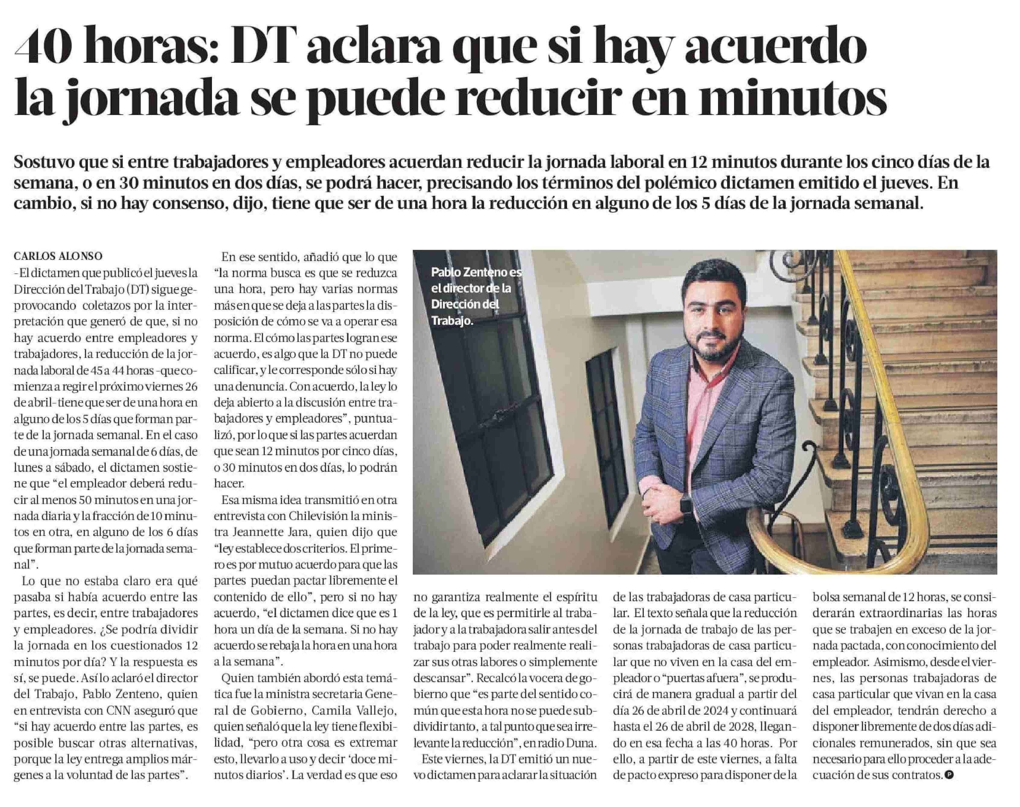 40 horas: DT aclara que si hay acuerdo la jornada se puede reducir en minutos