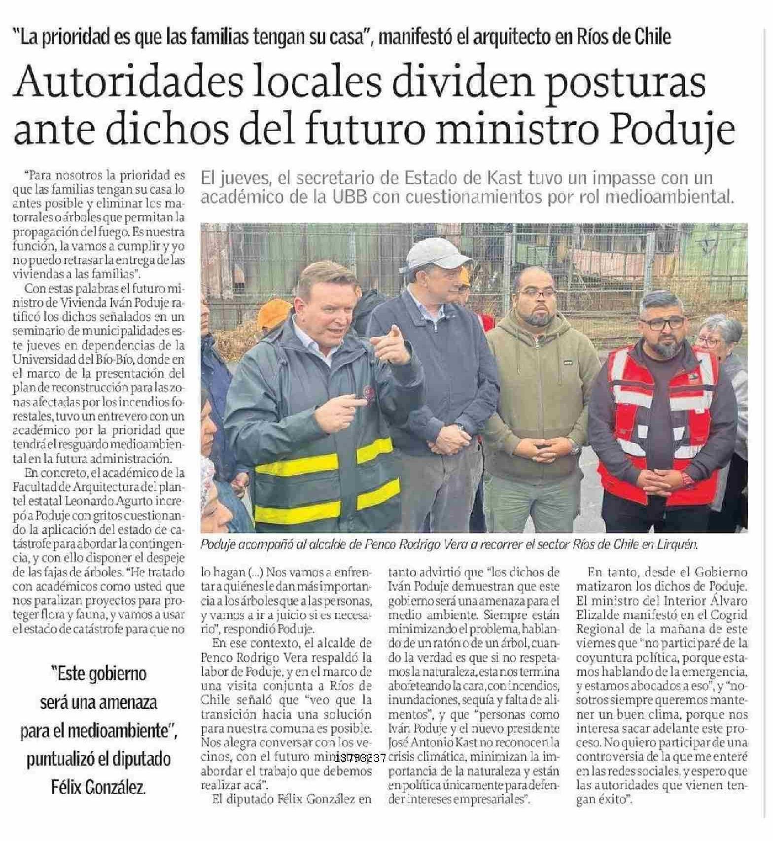 Autoridades locales dividen posturas ante dichos del futuro ministro Poduje