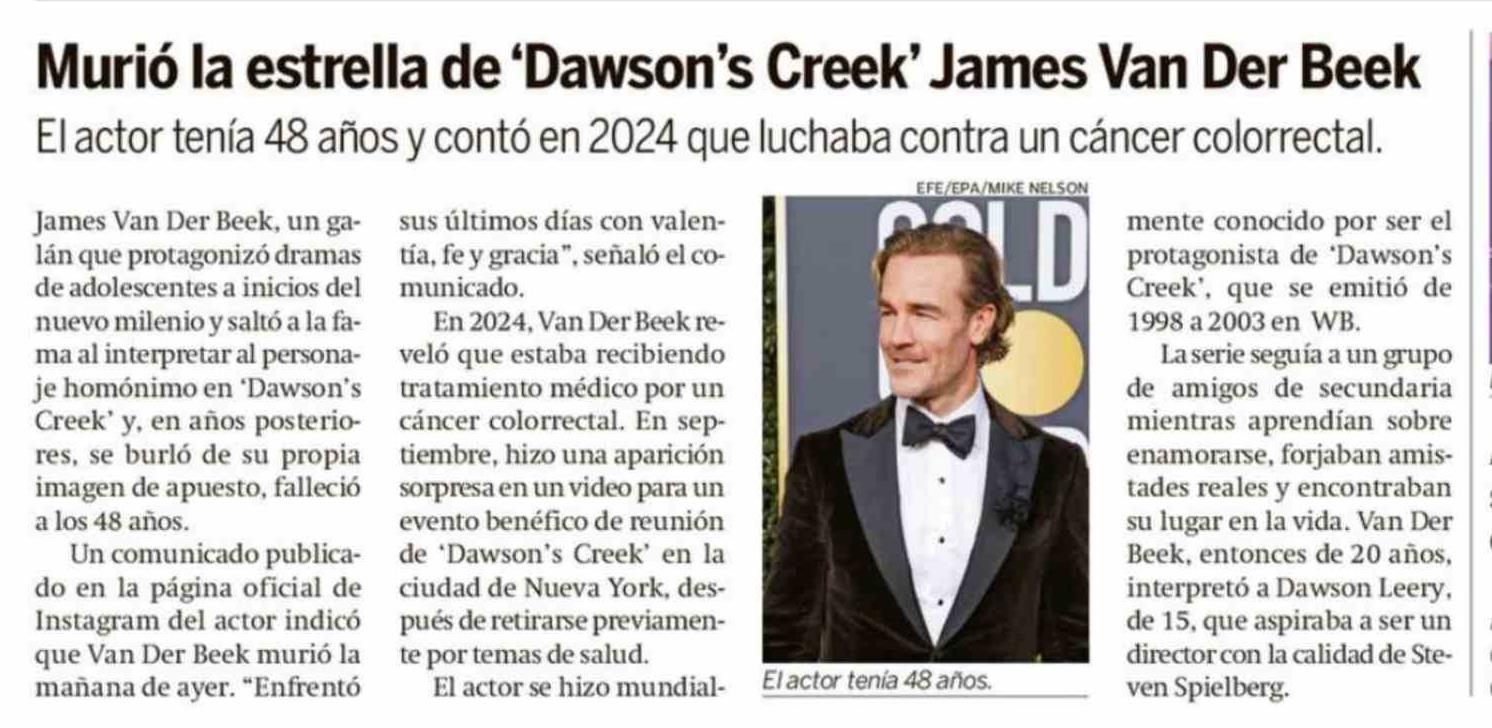 Murió la estrella de 'Dawson's Creek' James Van Der Beek