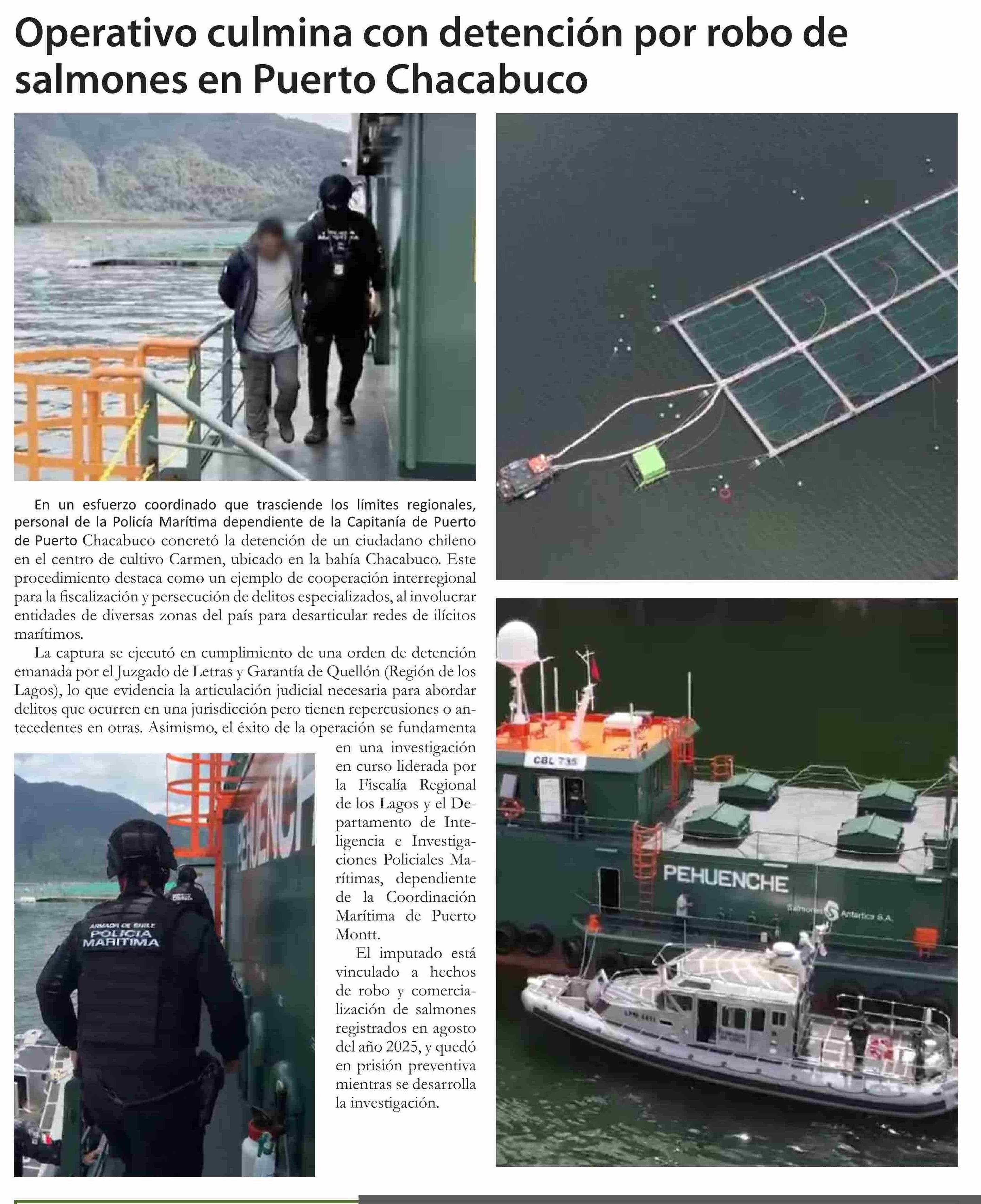 Operativo culmina con detención por robo de salmones en Puerto Chacabuco