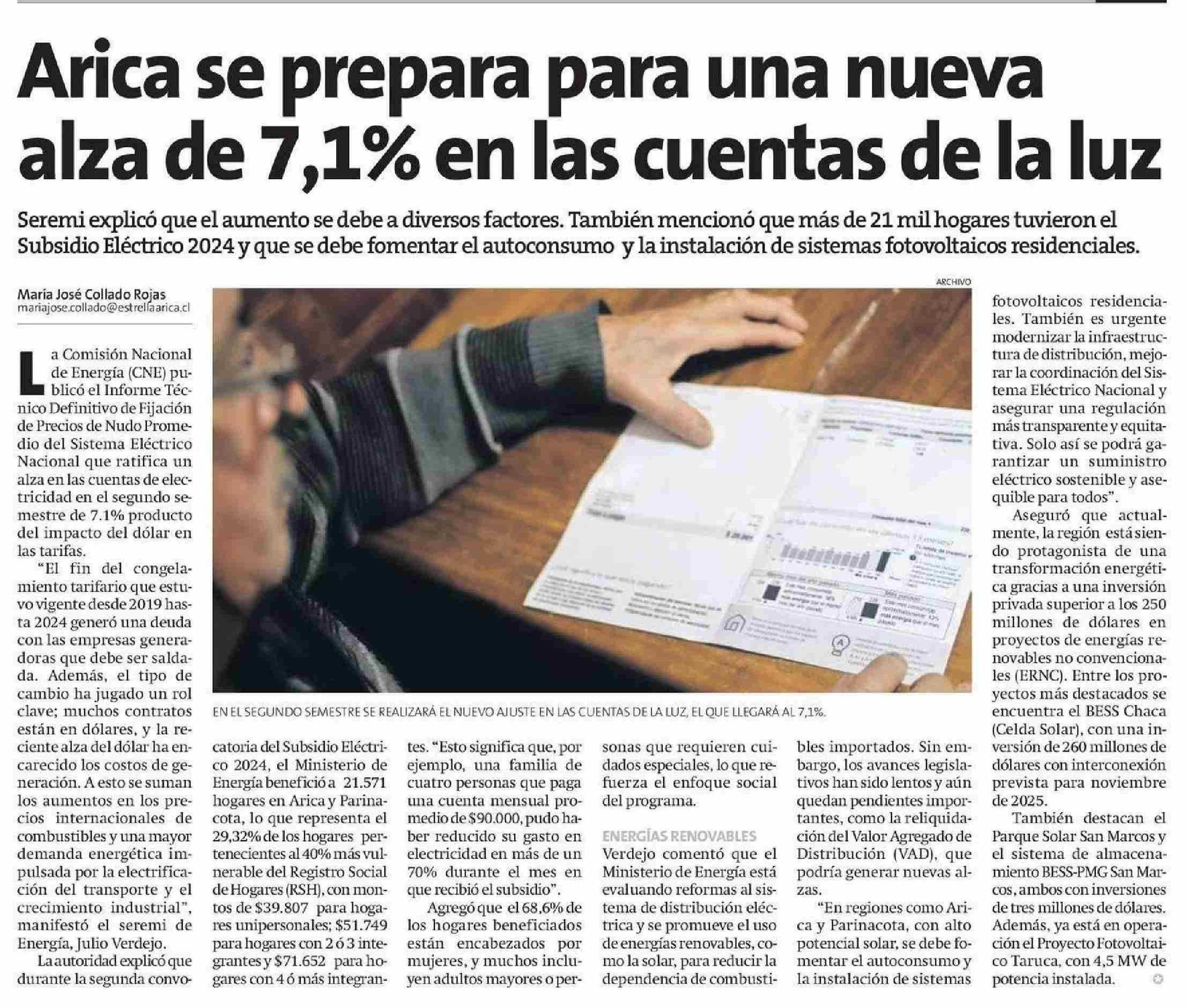 Arica se prepara para una nueva alza de 7,1% en las cuentas de la luz