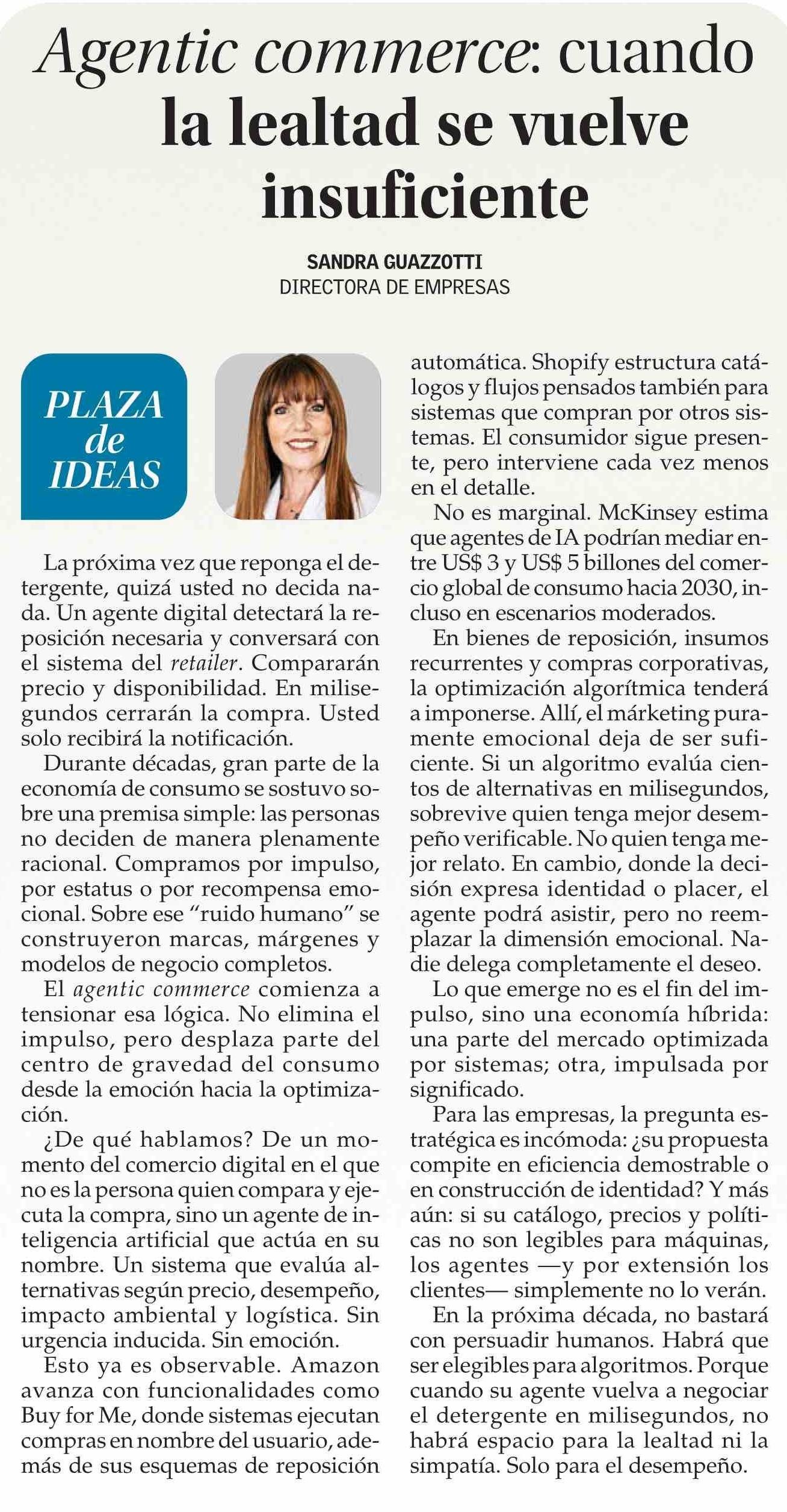 Columnas de Opinión: Agentic commerce: cuando la lealtad se vuelve insuficiente