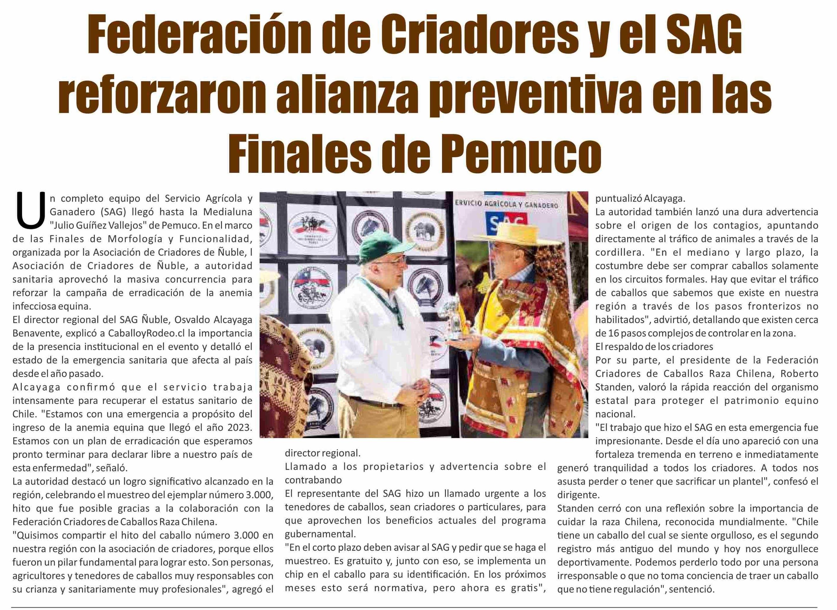 Federación de Criadores y el SAG reforzaron alianza preventiva en las Finales de Pemuco