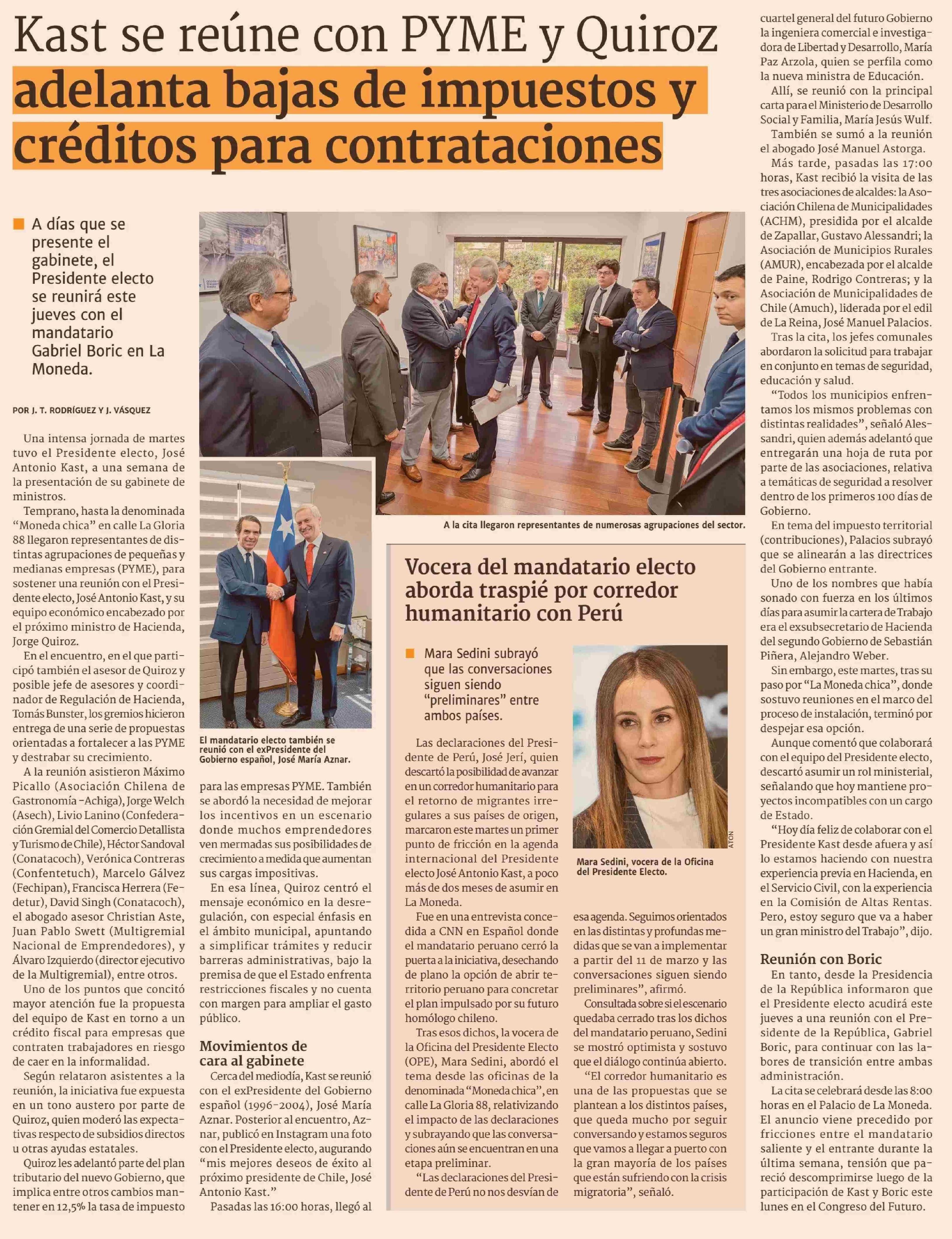 Kast se reúne con PYME y Quiroz adelanta bajas de impuestos y créditos para contrataciones