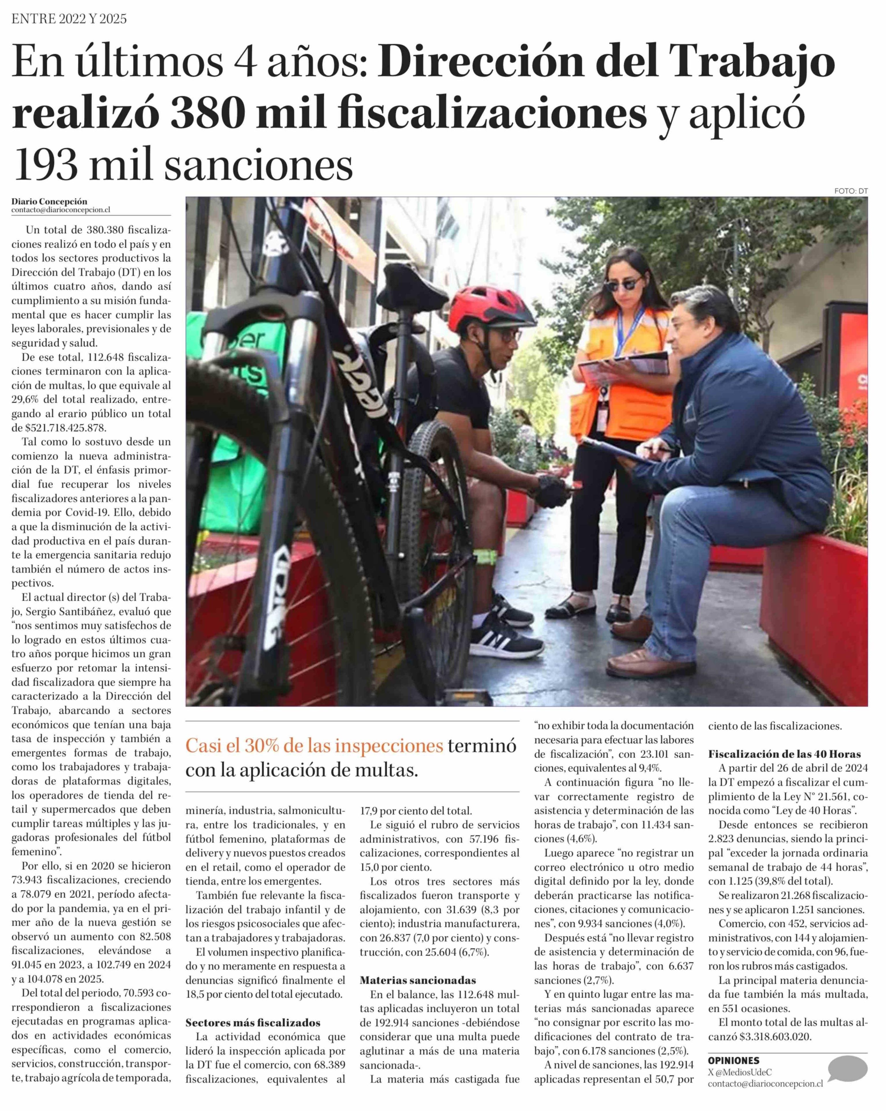En últimos 4 años: Dirección del Trabajo realizó 380 mil fiscalizaciones y aplicó 193 mil sanciones