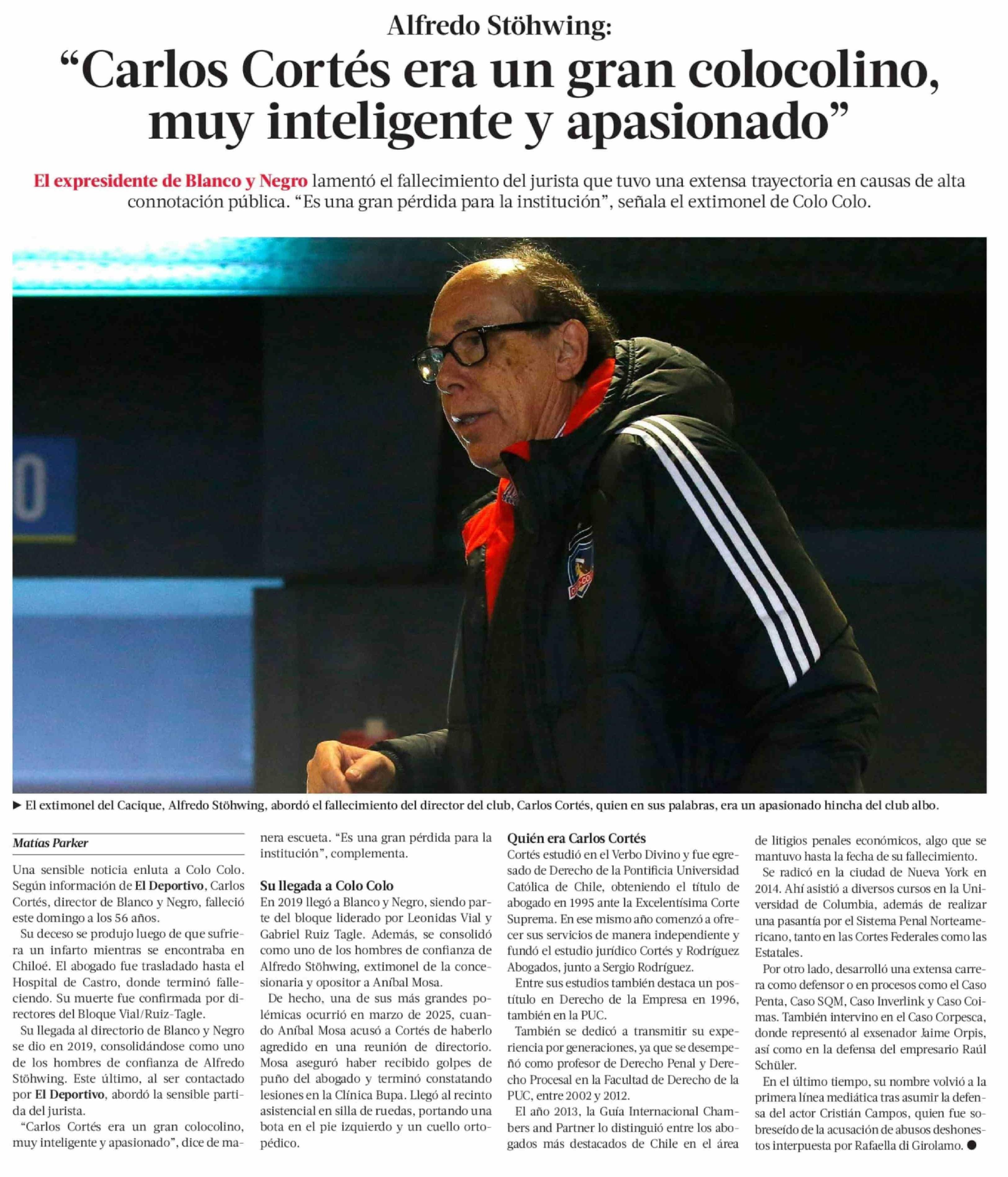 "Carlos Cortés era un gran colocolino, muy inteligente y apasionado"