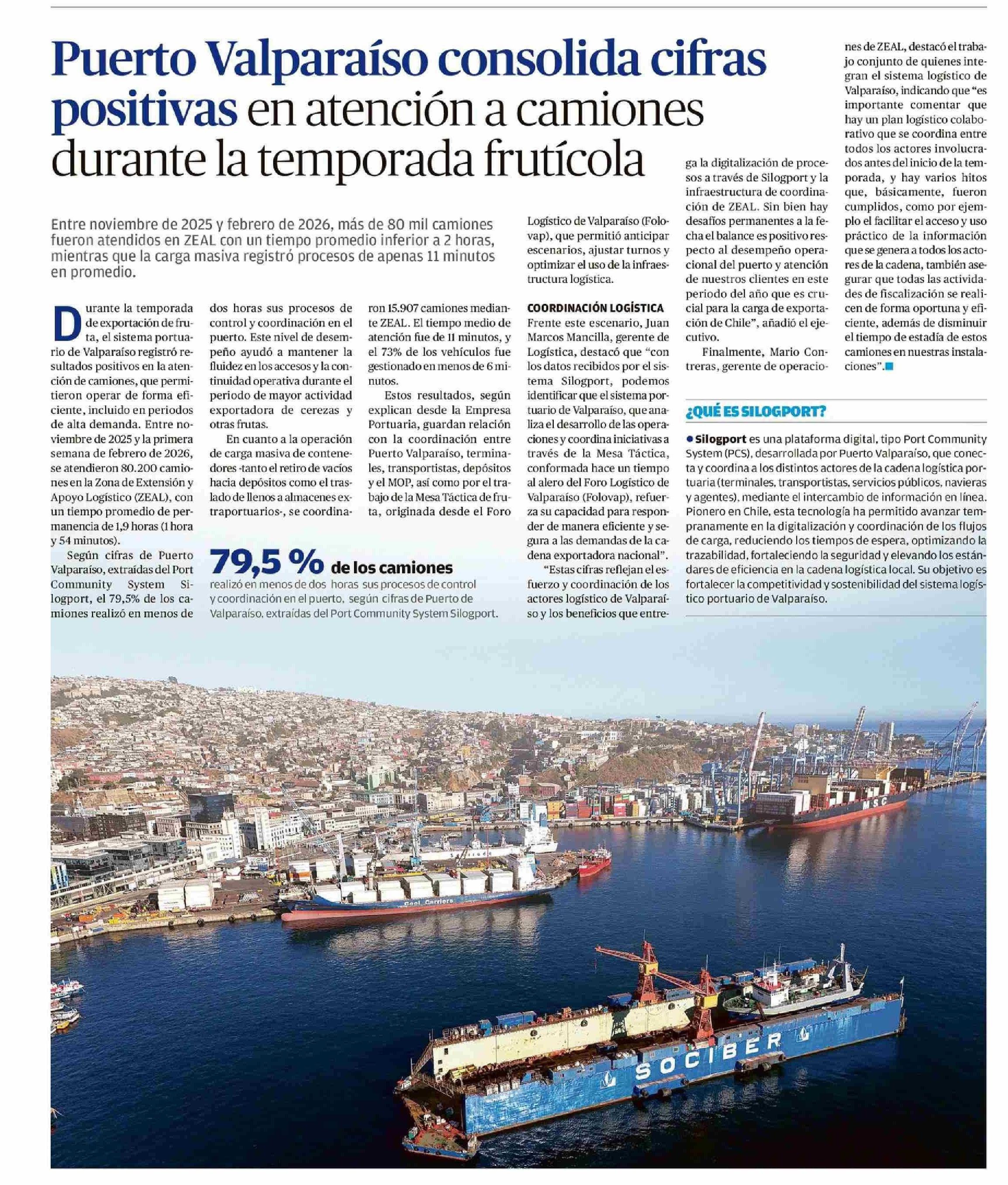 Puerto Valparaíso consolida cifras en atencion a camiones la temporada frutícola