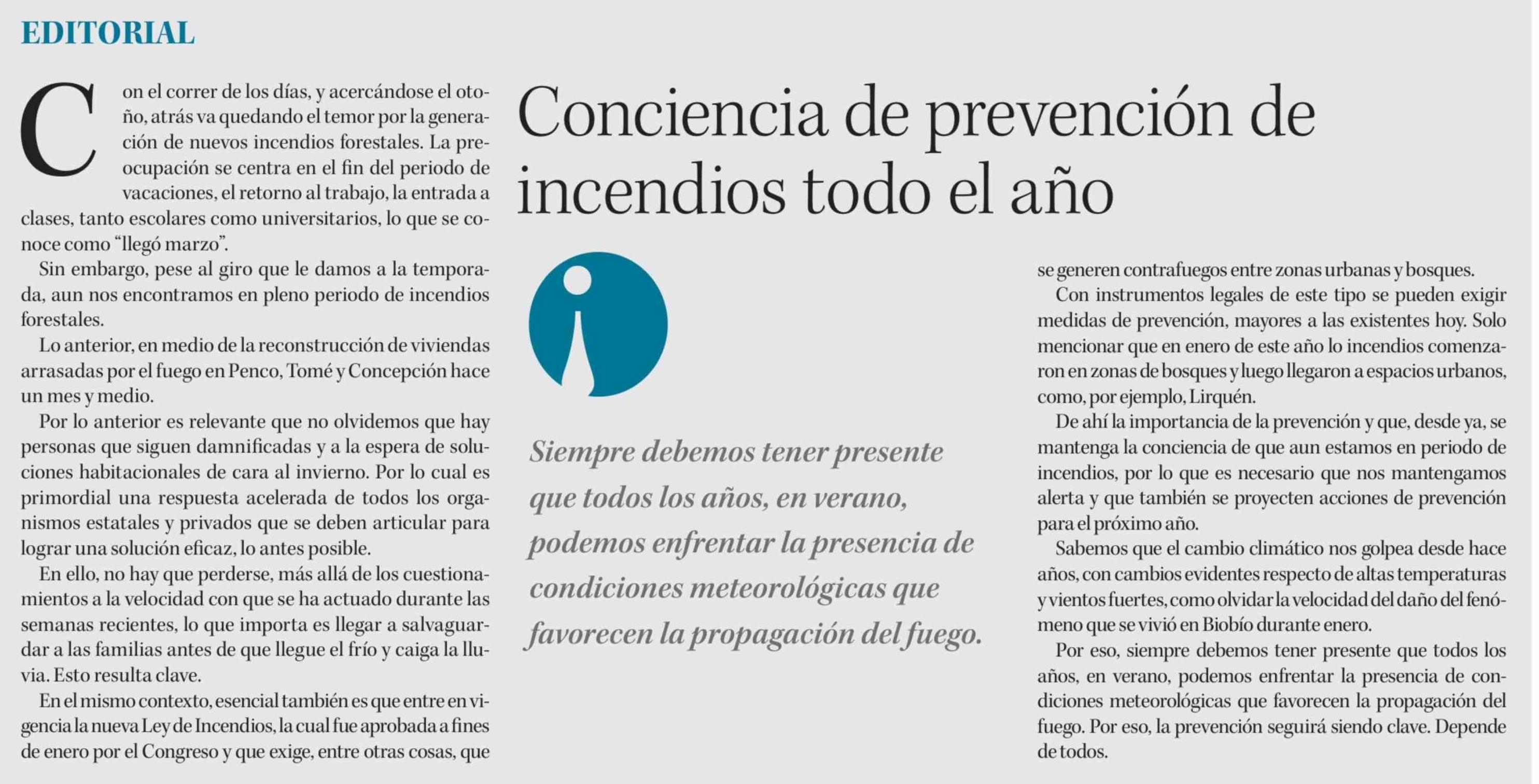 Editorial: Conciencia de prevención de incendios todo el año