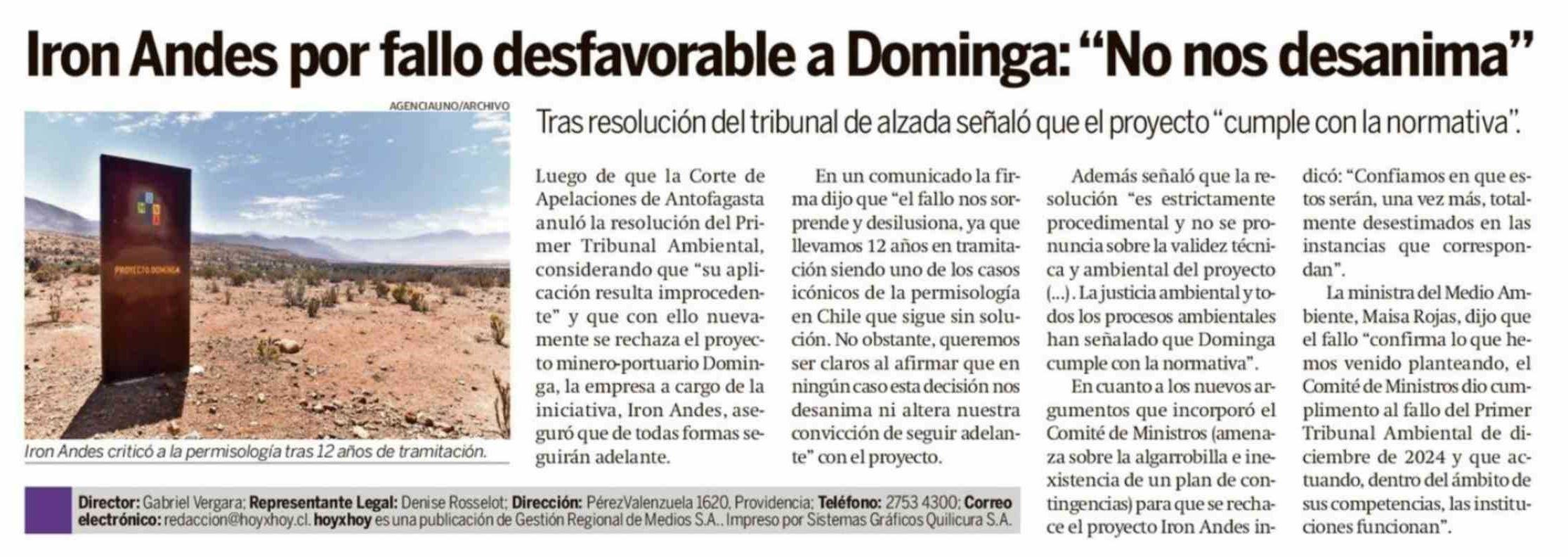 Iron Andes por fallo desfavorable a Dominga: "No nos desanima"