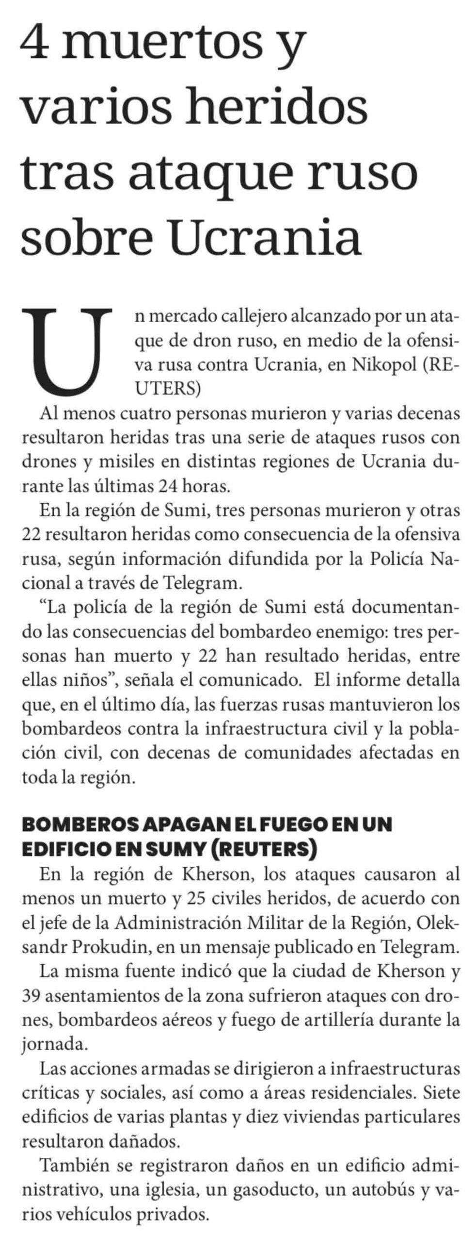 4 Muertos y varios heridos tras ataque ruso sobre Ucrania