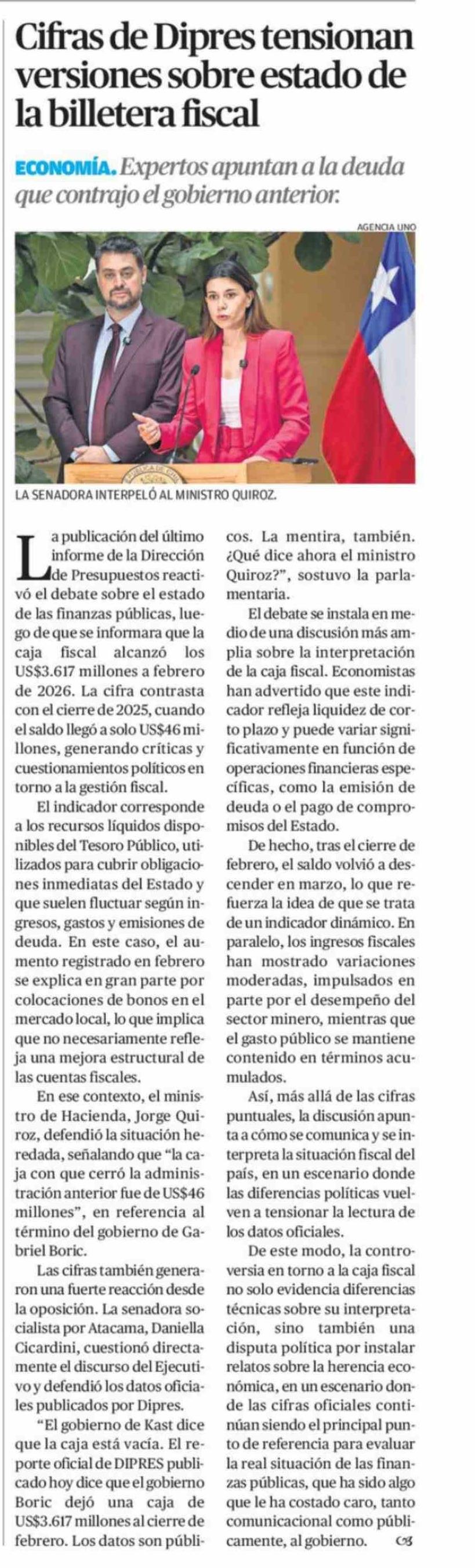 Cifras de Dipres tensionan versiones sobre estado de la billetera fiscal
