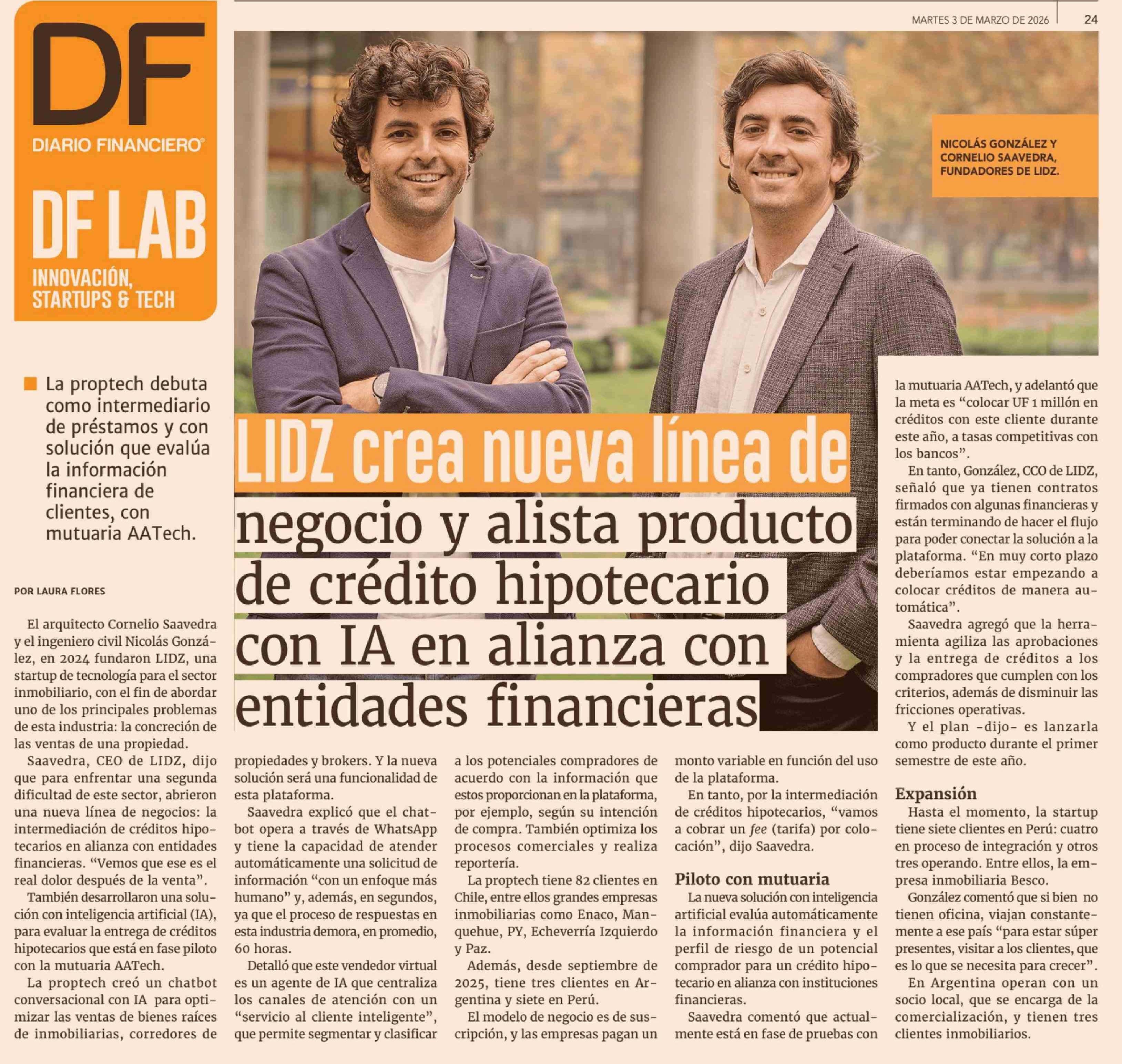 LIDZ crea nueva línea de negocio y alista producto de crédito hipotecario con IA en alianza con entidades financieras