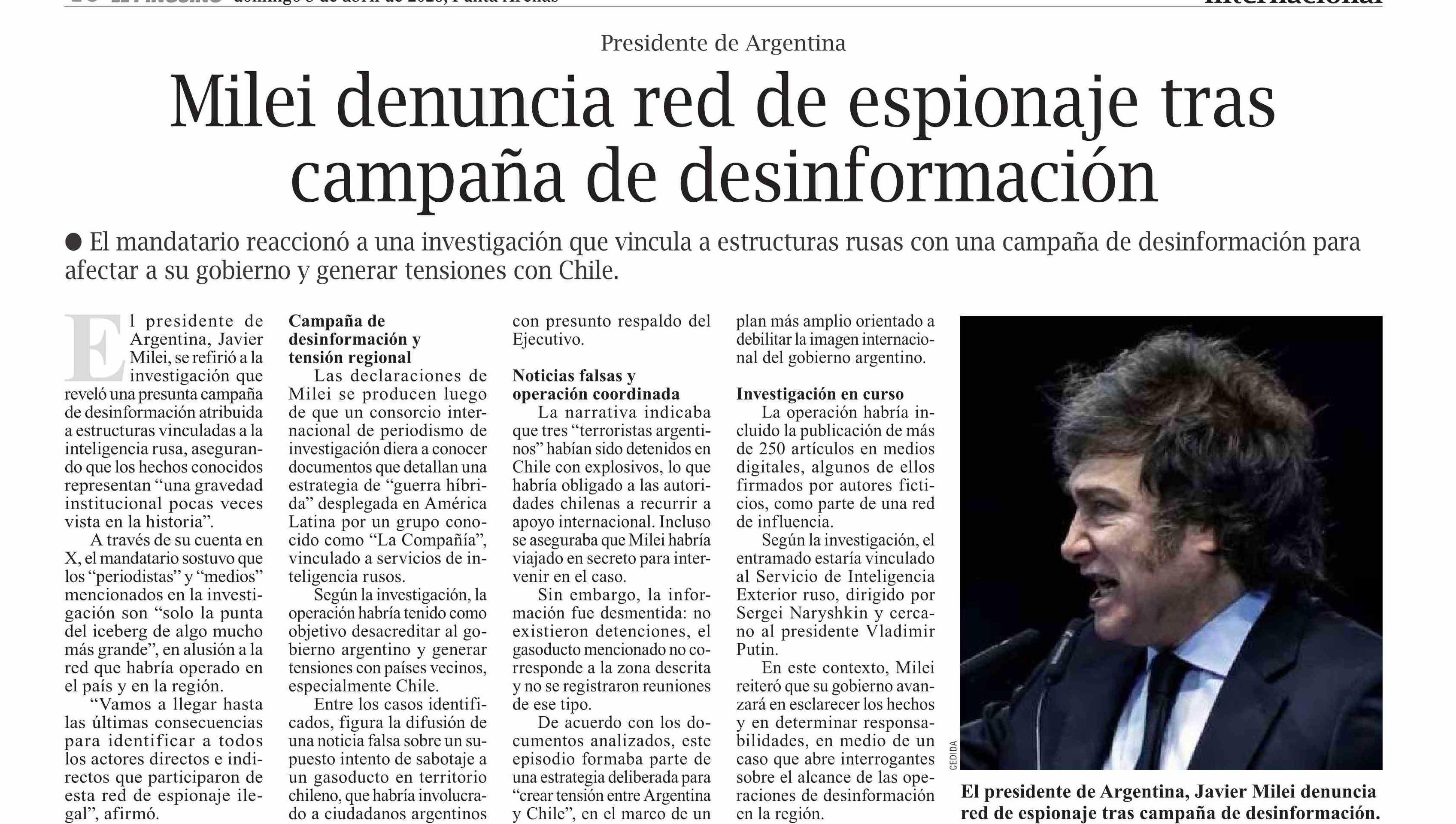 Milei denuncia red de espionaje tras campaña de desinformación